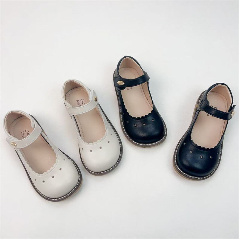 真皮女童皮鞋森系牛皮女孩单鞋白色公主鞋黑色演出鞋软底浅口单鞋