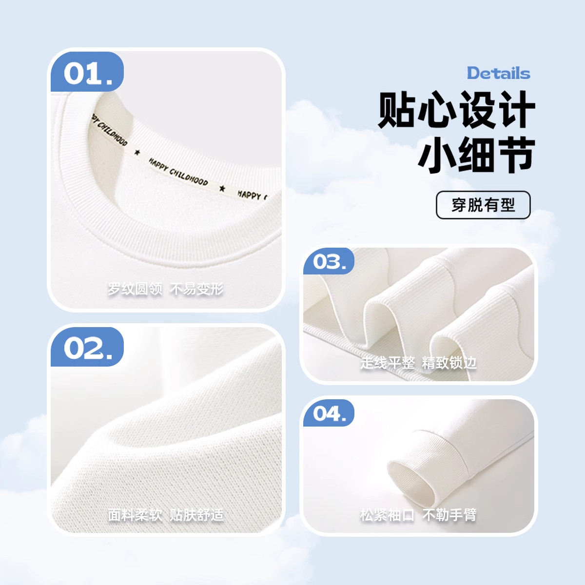 儿童a类全棉卫衣男童长袖t恤白色薄款上衣春季女童打底衫青少年