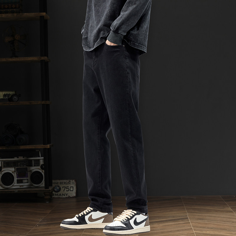 黑色不掉色加绒牛仔裤男生潮牌宽松直筒弹力百搭休闲长裤2026新款