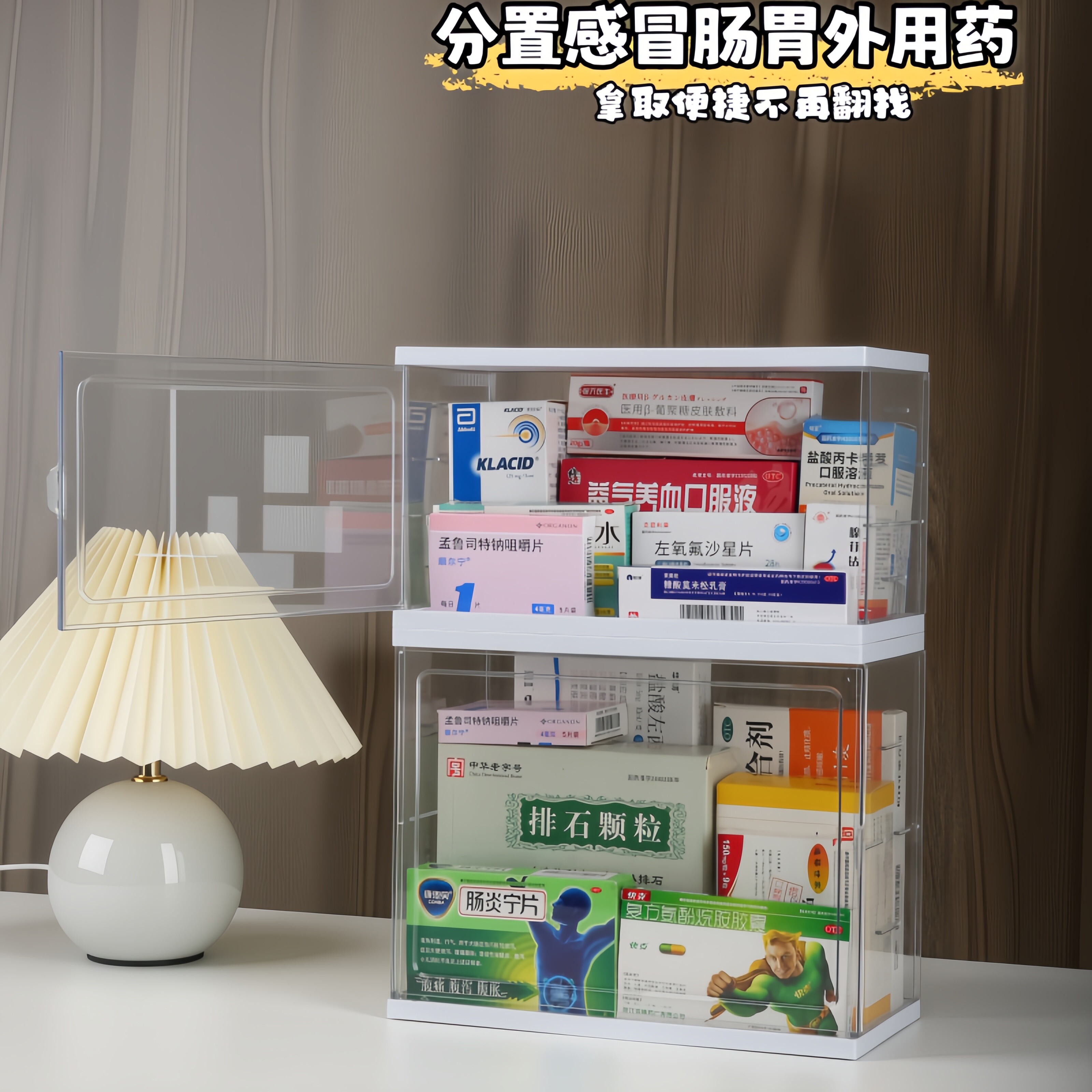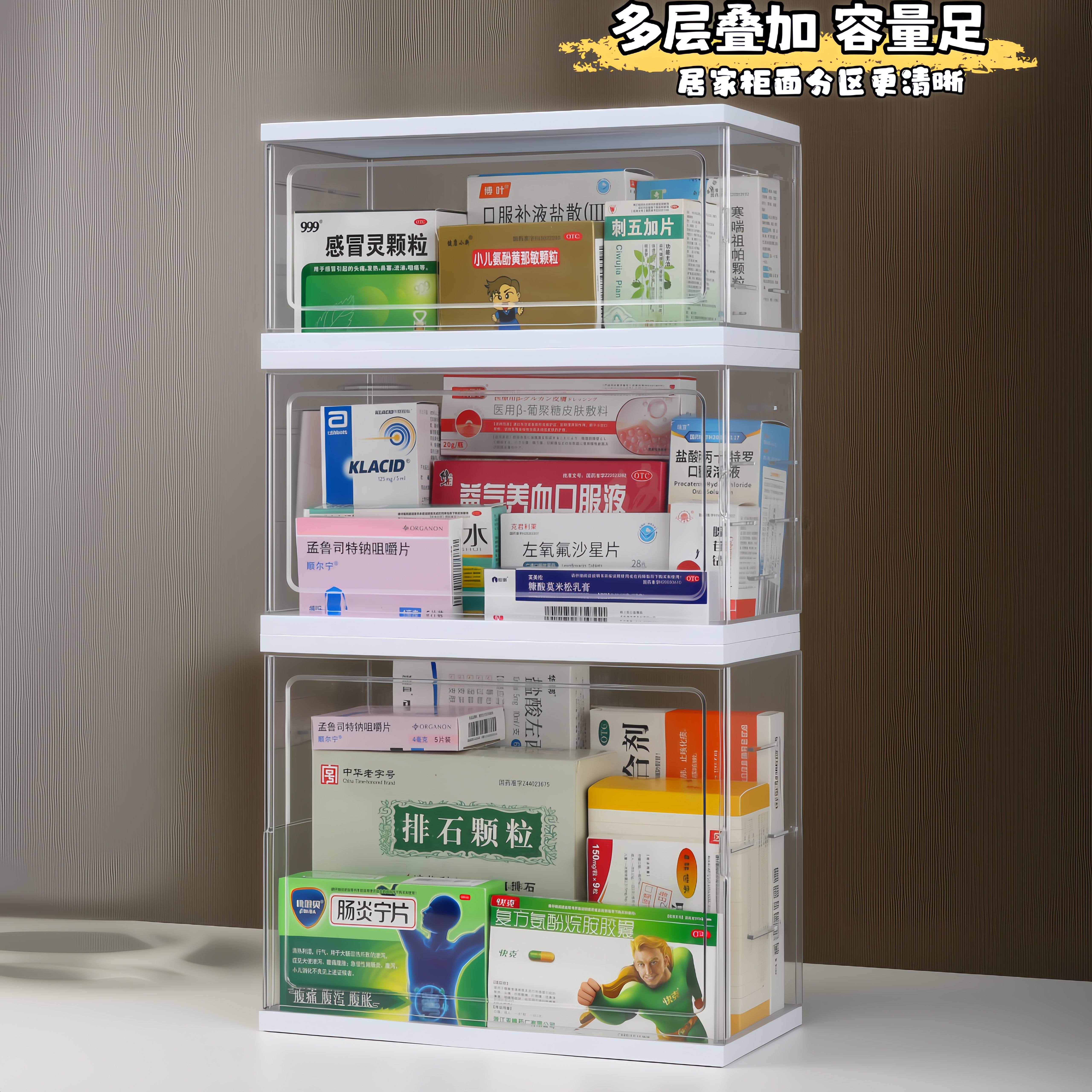 透明亚克力桌面收纳盒药盒可叠加分层整理箱居家必备药品收纳神器