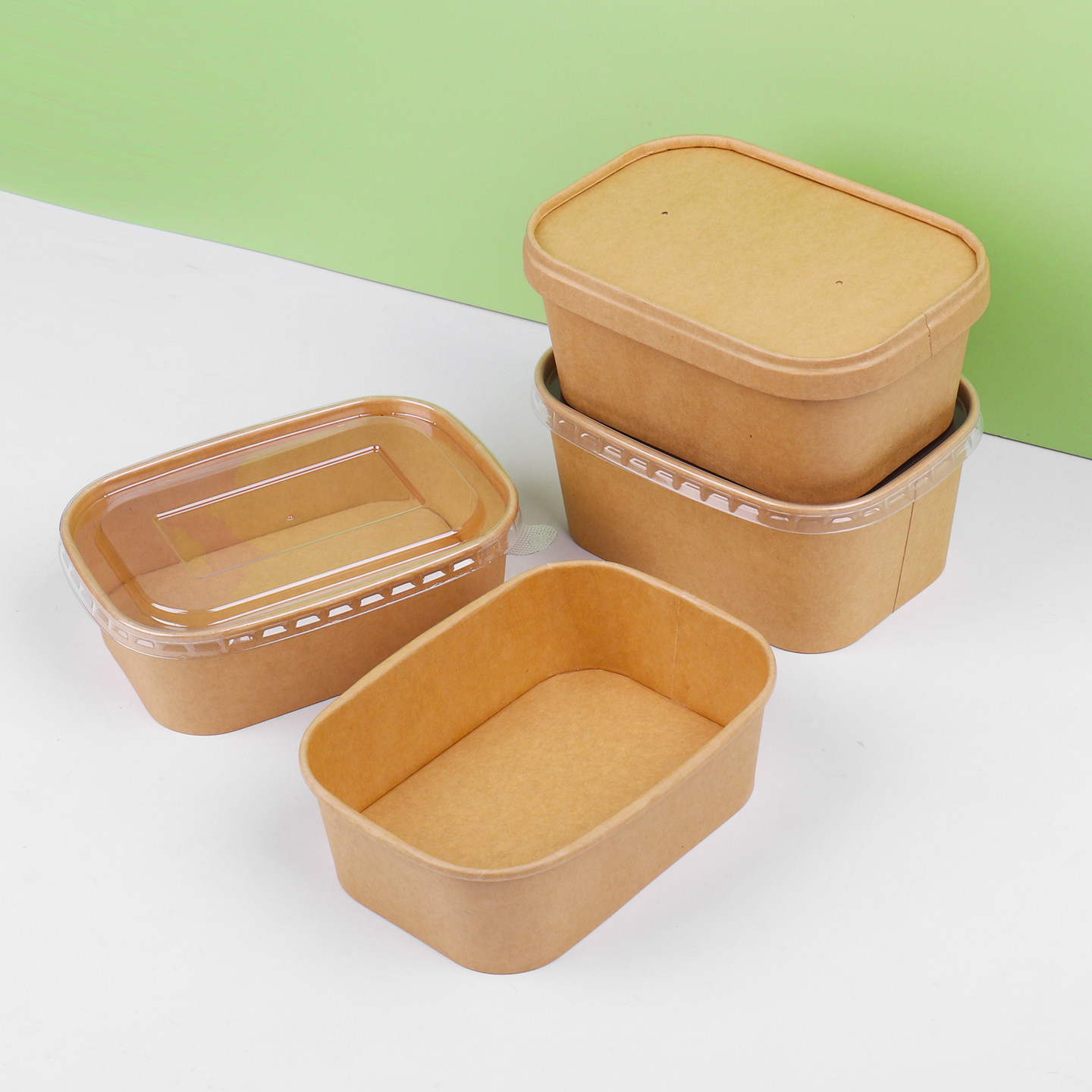加厚一次性牛皮纸打包盒方形餐盒带盖户外野餐水果盒可微波炉家用