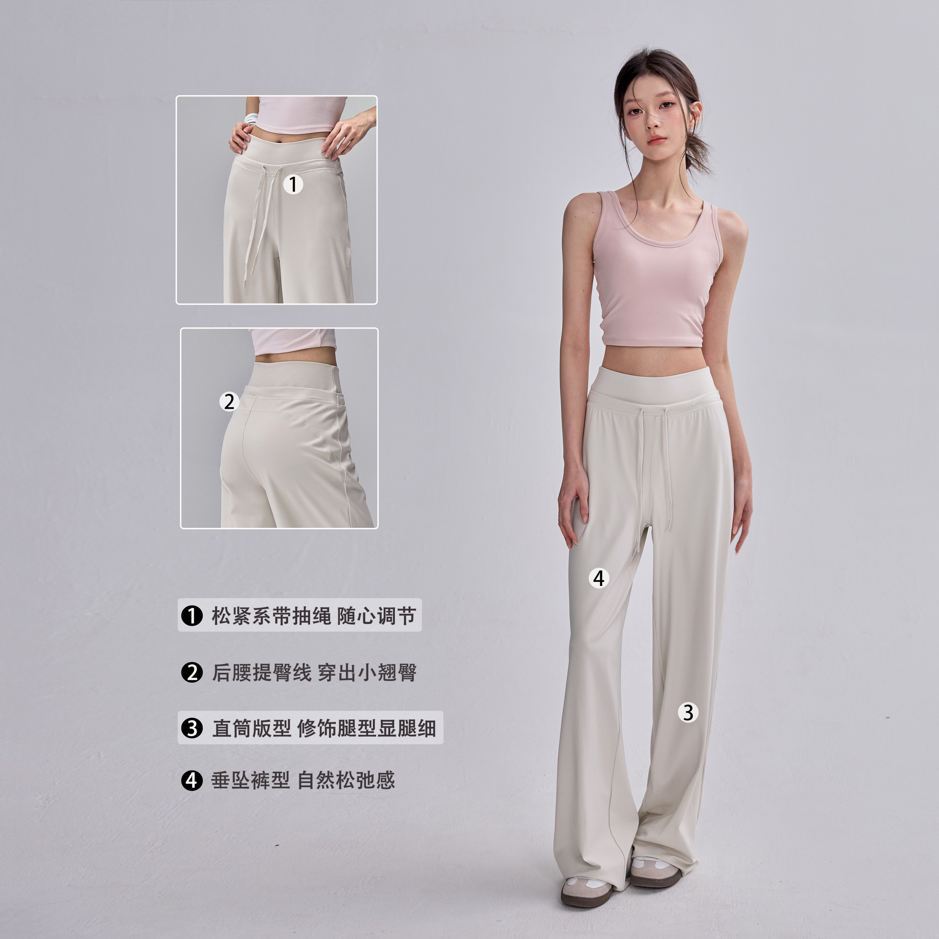 宽松运动裤女直筒垂感显瘦高腰阔腿健身长裤普拉提训练瑜伽服套装