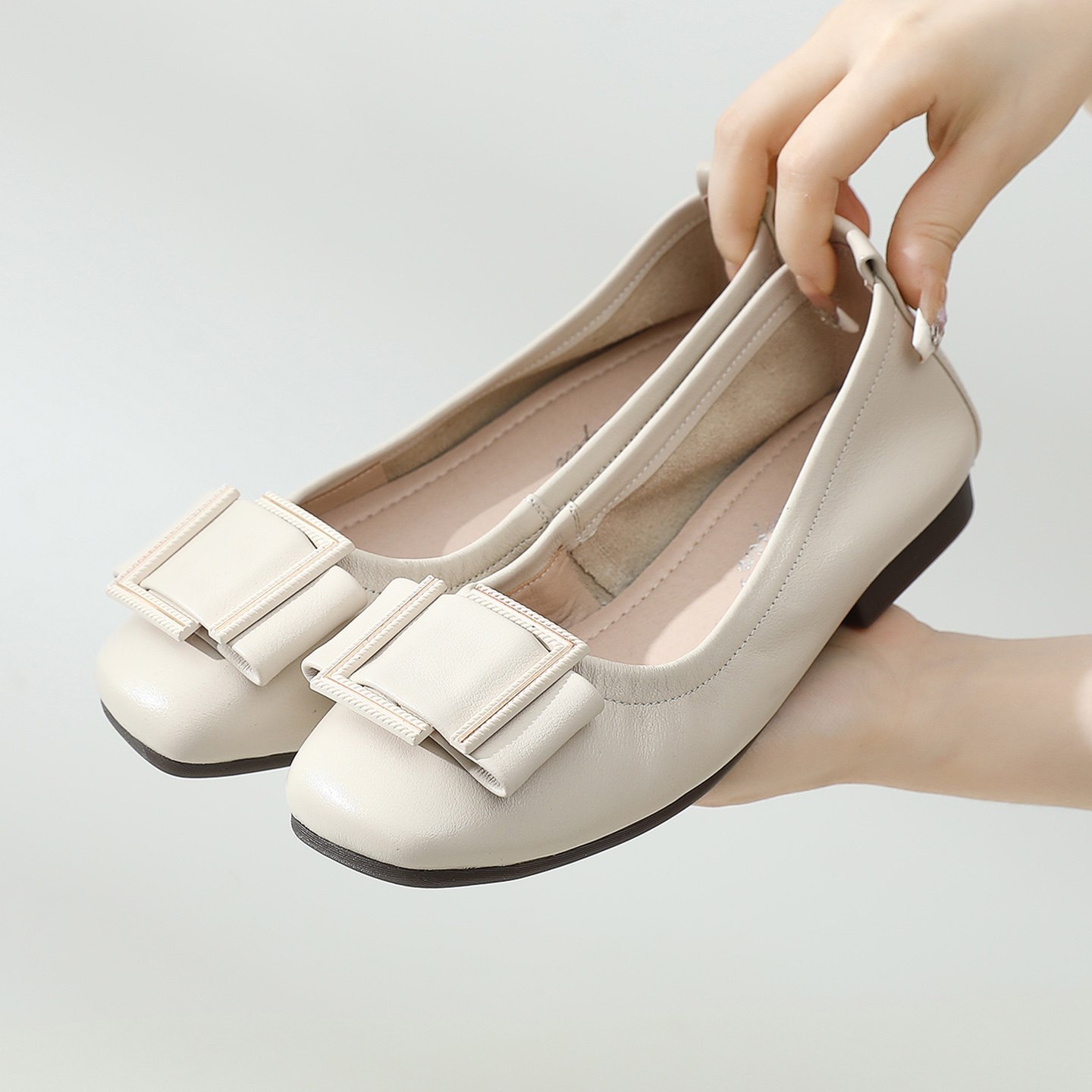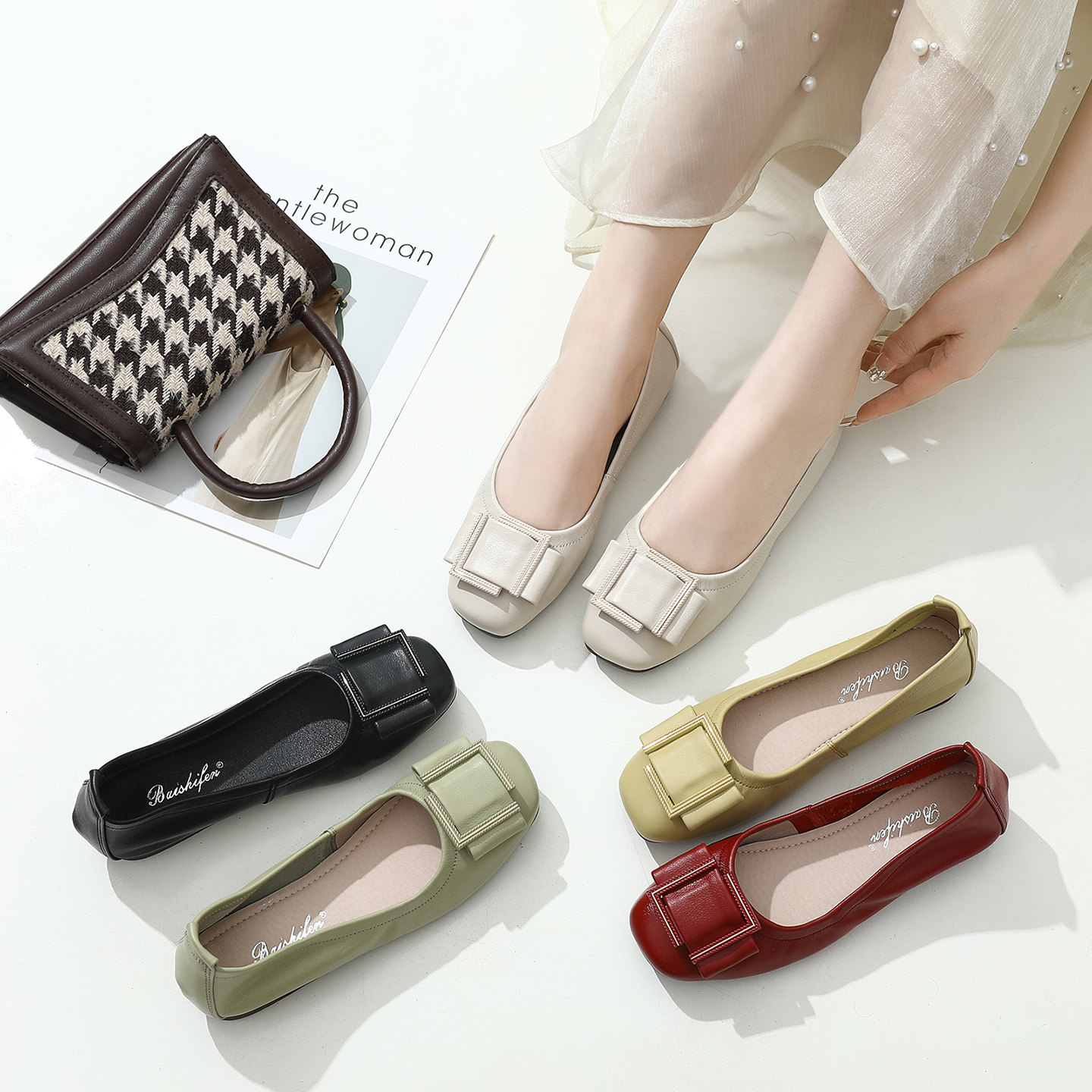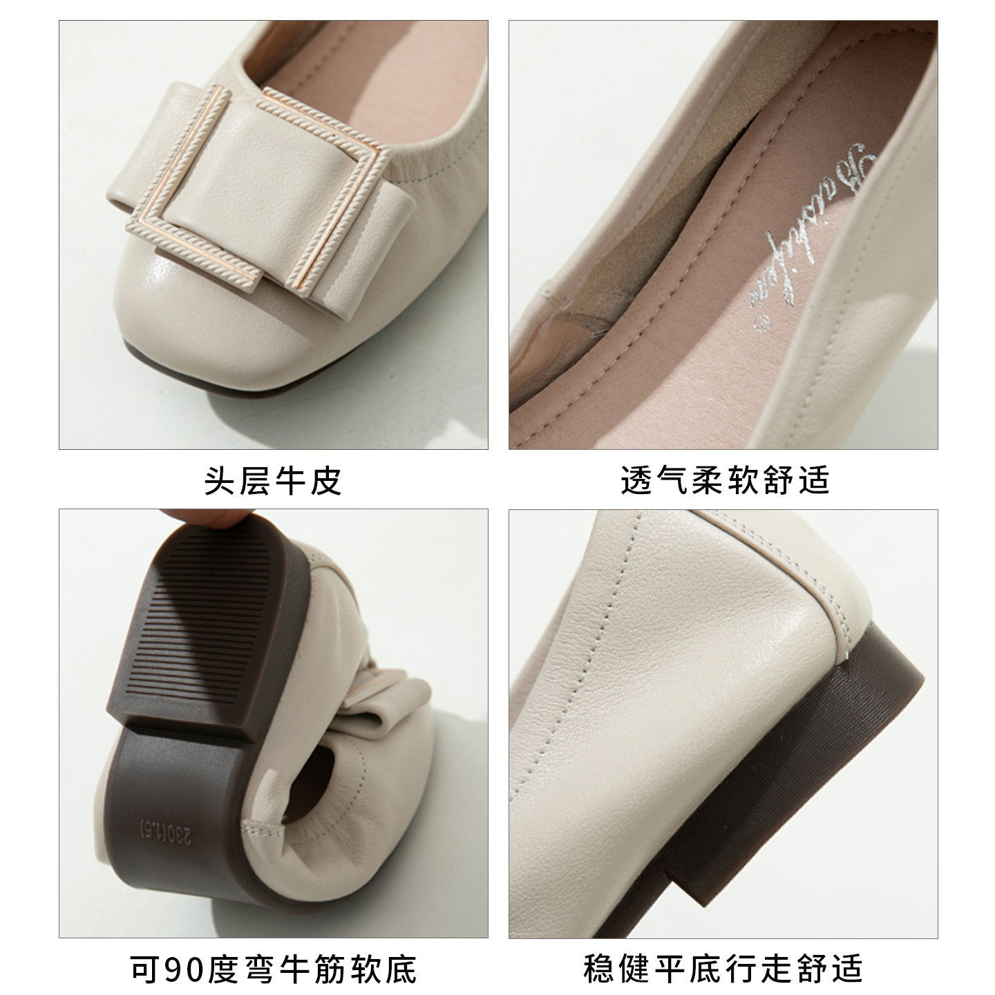 浅口单鞋女平底鞋温柔真皮豆豆鞋软底软面春夏女鞋配裙子软皮鞋子
