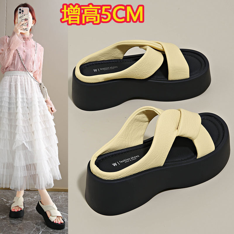 厚底拖鞋女外穿2025夏季新款不累脚轻便小个子增高配裙子凉拖34码
