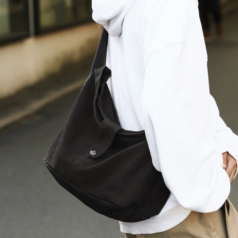 复古帆布包男女生单肩斜挎包大容量上课邮差背包通勤托特包饺子包