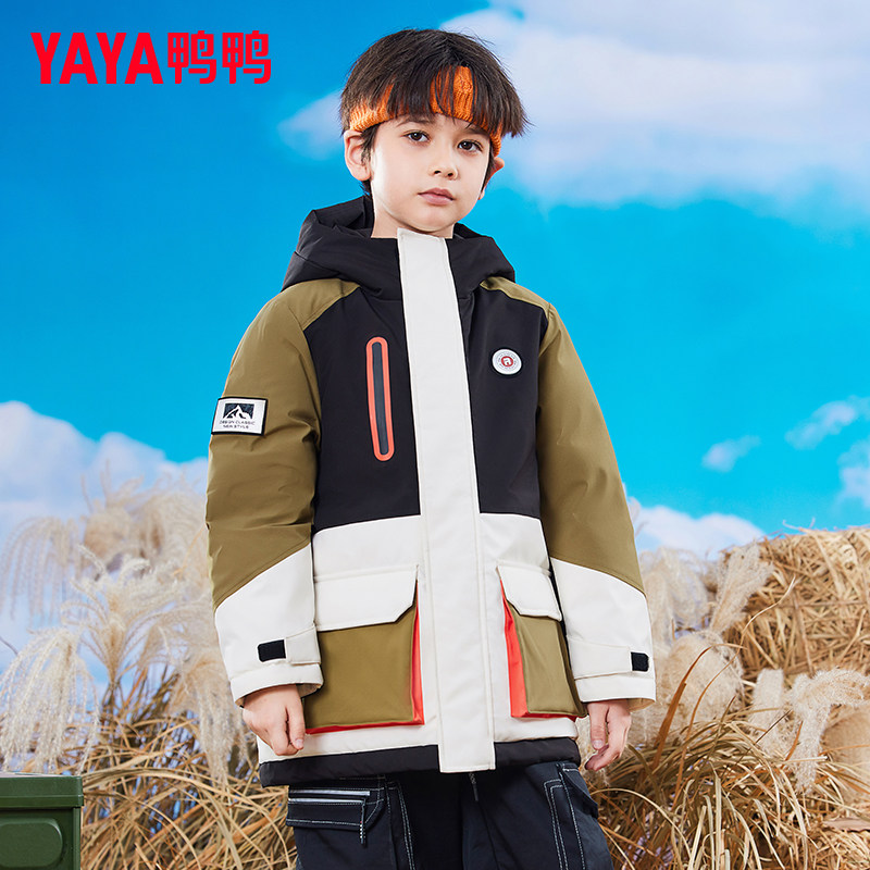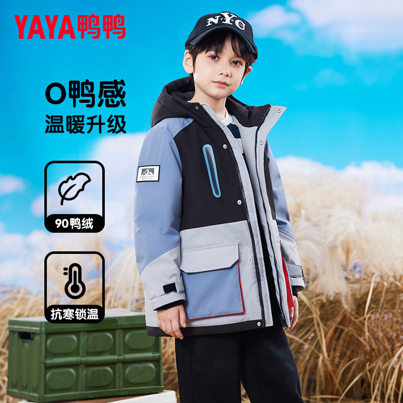 鸭鸭儿童羽绒服男童加厚学生工装宽松冬季中大童装青少年外套GM