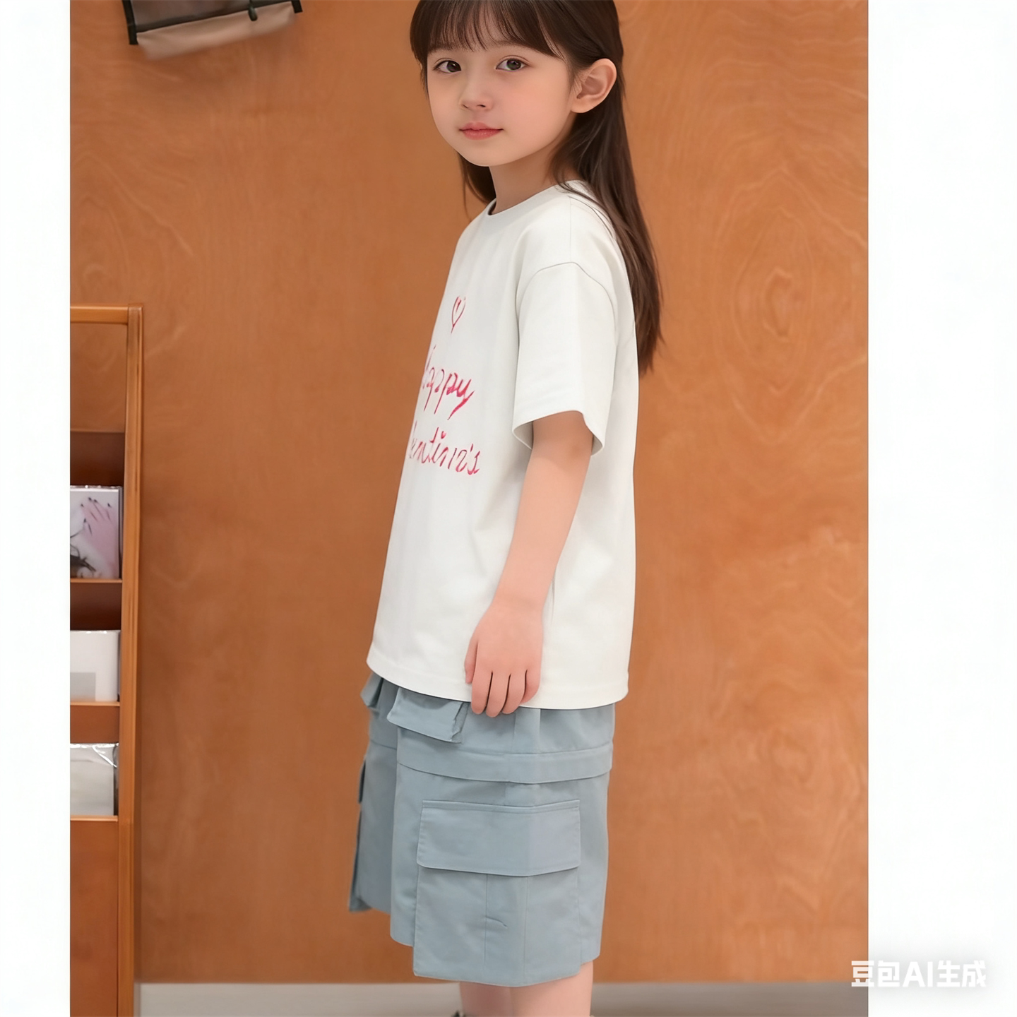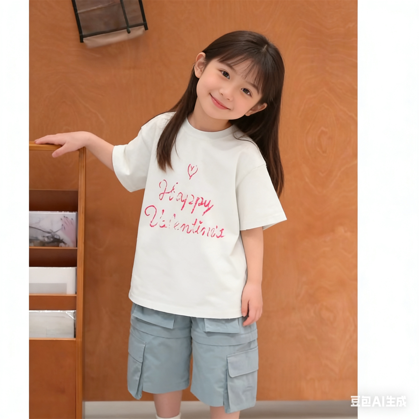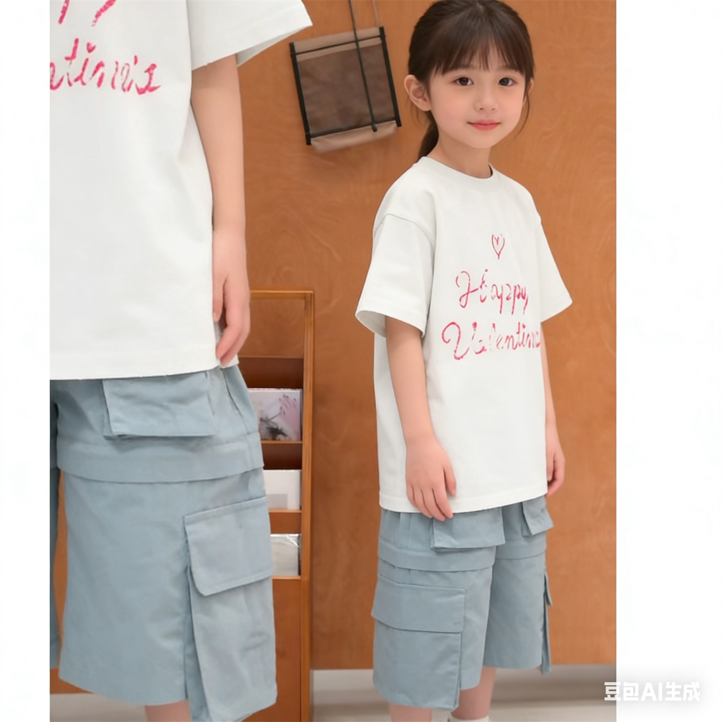 韩版童装夏新款男女童潮酷字母印花短袖T恤宽松版直筒工装裤套装