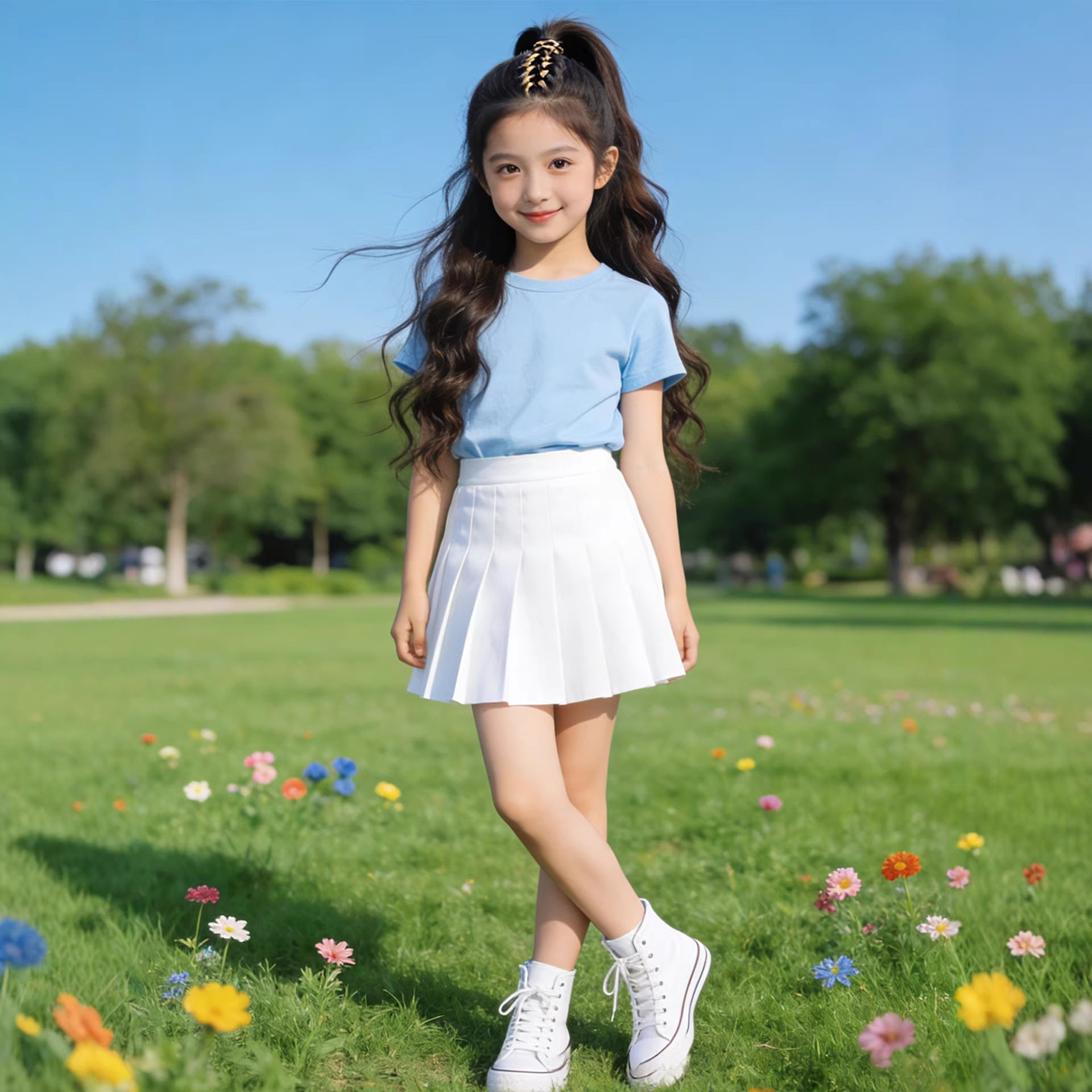 jk学院风女童百褶裙半身裙防走光白色短裙中大童运动裙子网球裙薄