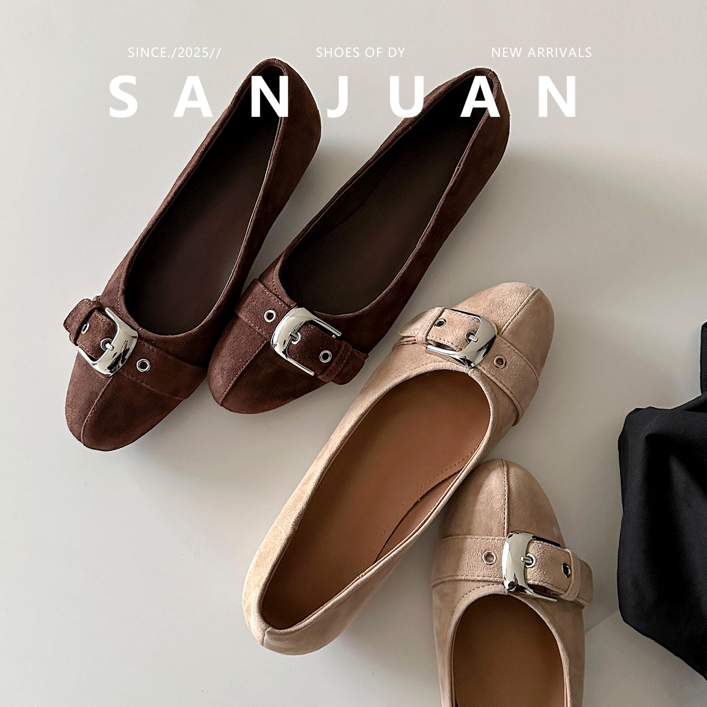 羊皮版sanjuan三卷内增高单鞋圆头浅口复古设计感配裙子女鞋春夏