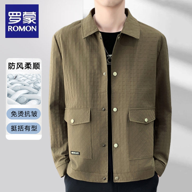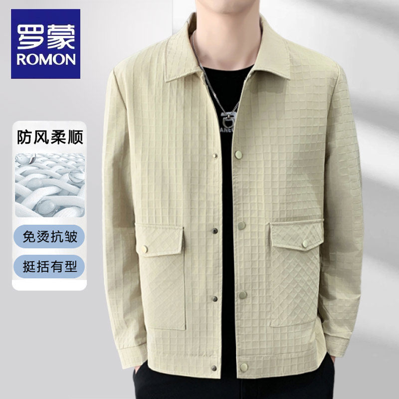 罗蒙男士夹克春季新款商务休闲翻领免烫抗皱薄款上衣男款春装外套
