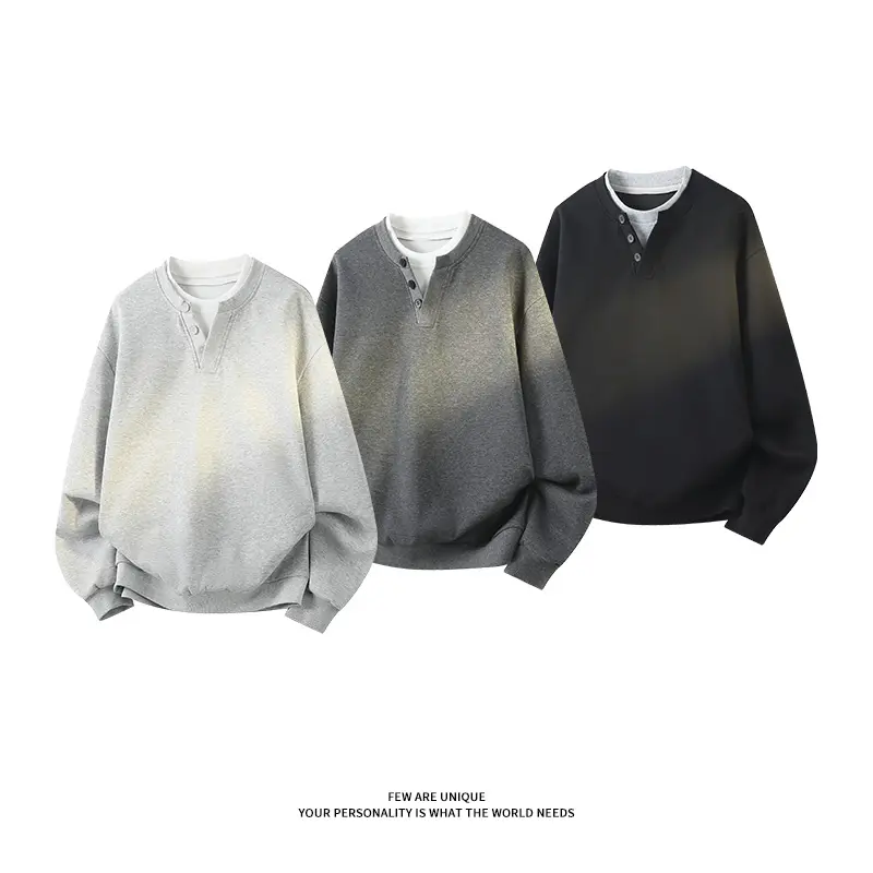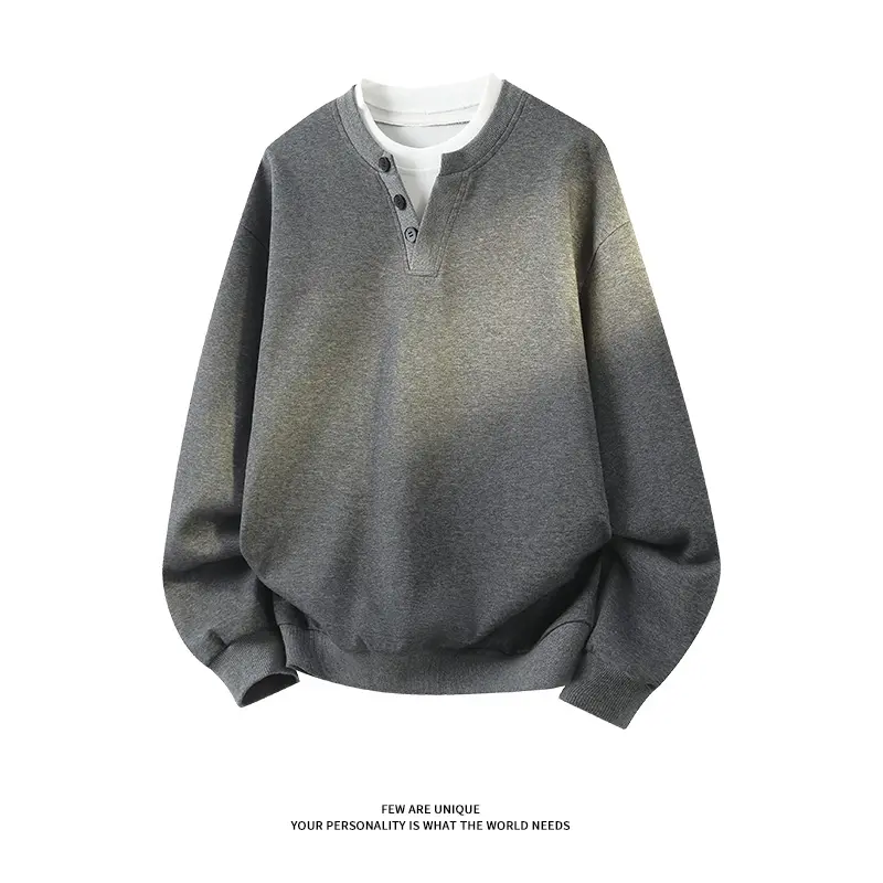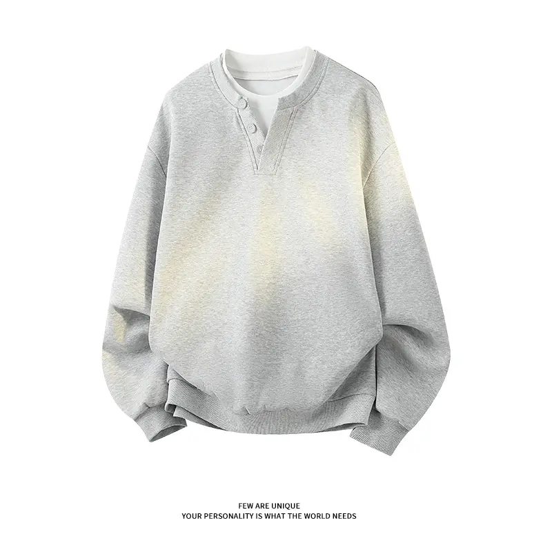 青少年假两件亨利领卫衣男春季新款叠穿长袖上衣男女款套头内搭潮