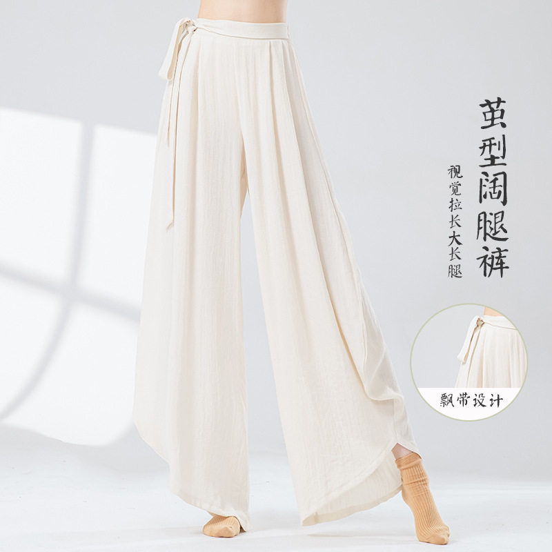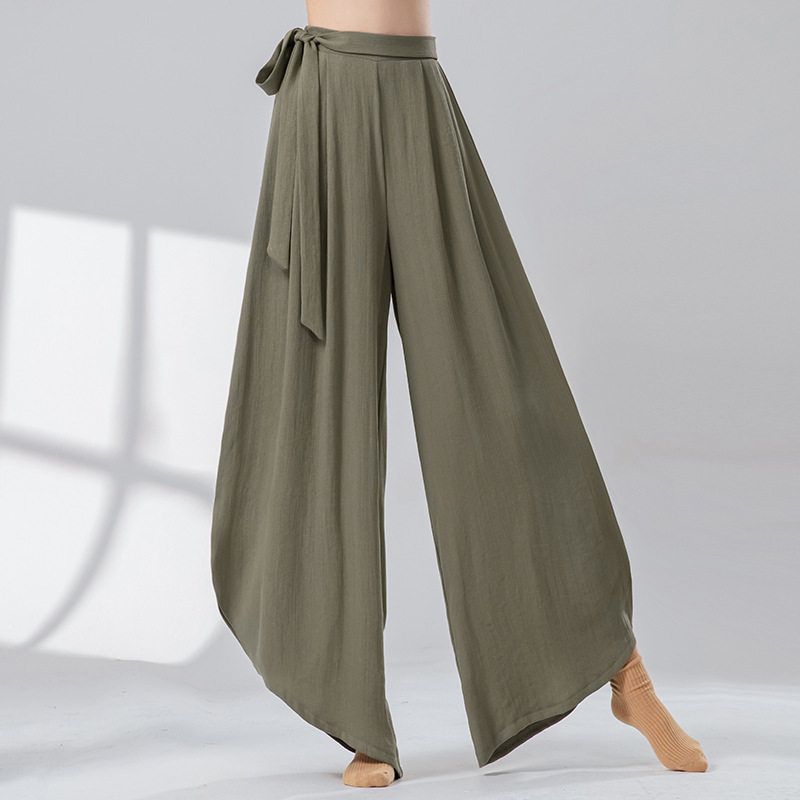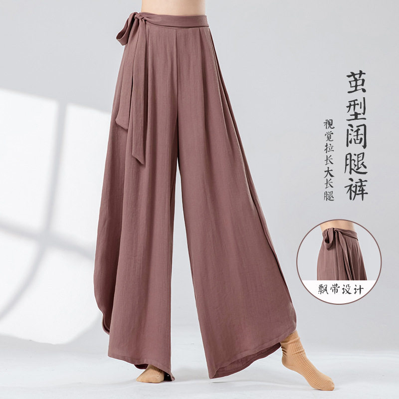 亚麻古典舞练功裤女高腰宽松飘逸茧型阔腿裤成人现代爵士舞蹈裤子