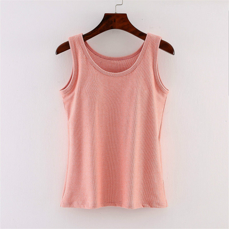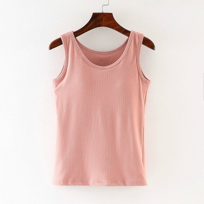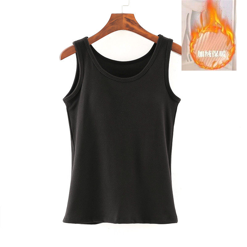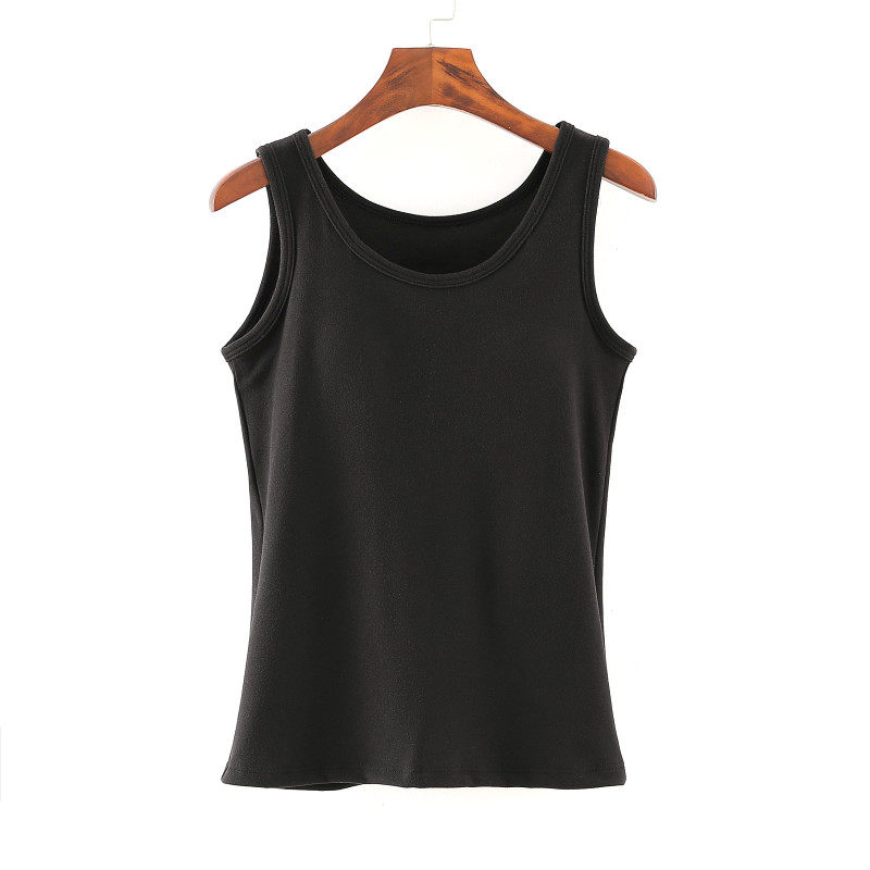 带胸垫细螺纹加绒宽松背心女罩杯文胸内衣一体冬季款保暖瑜伽上衣