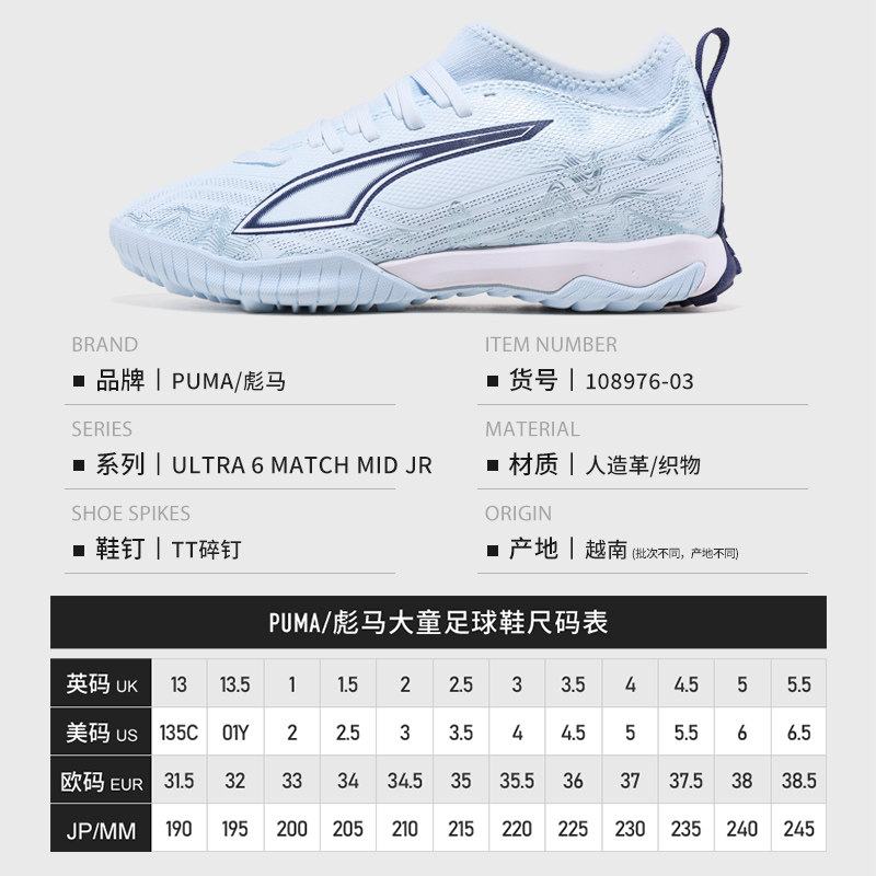 311线报网描述:Puma儿童足球鞋ULTRA6中端TT碎钉