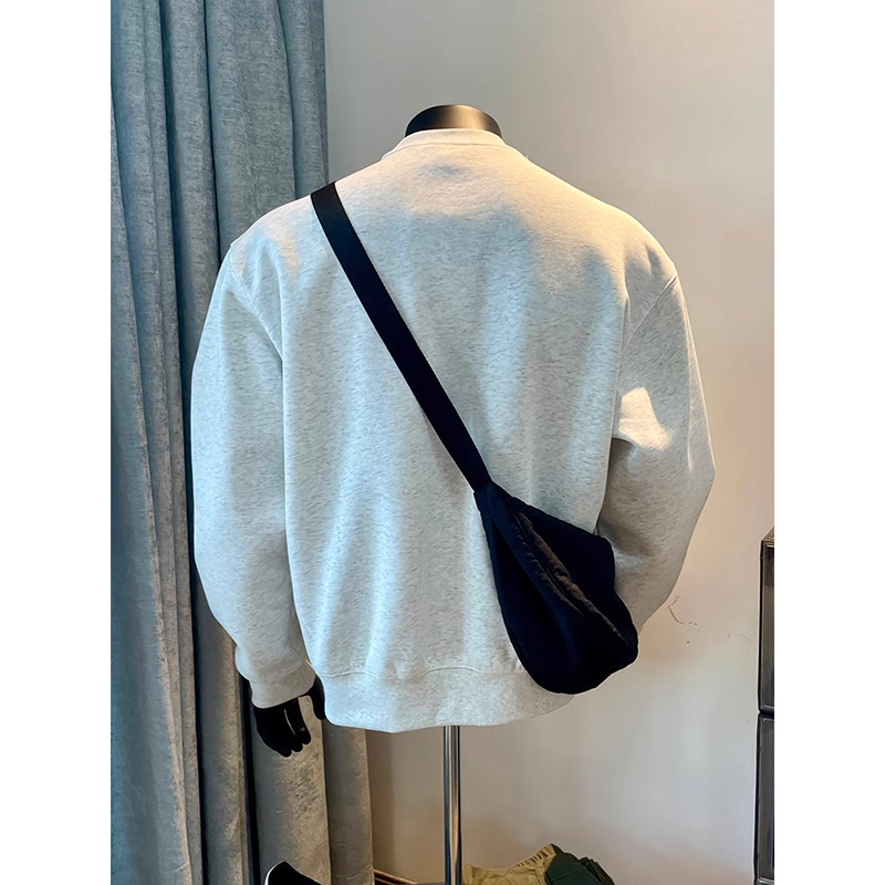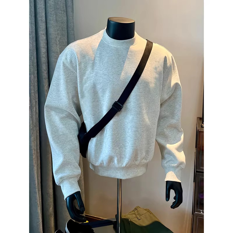 大码300斤黑色重磅美式圆领卫衣男款春秋季内搭小领口长袖打底衫