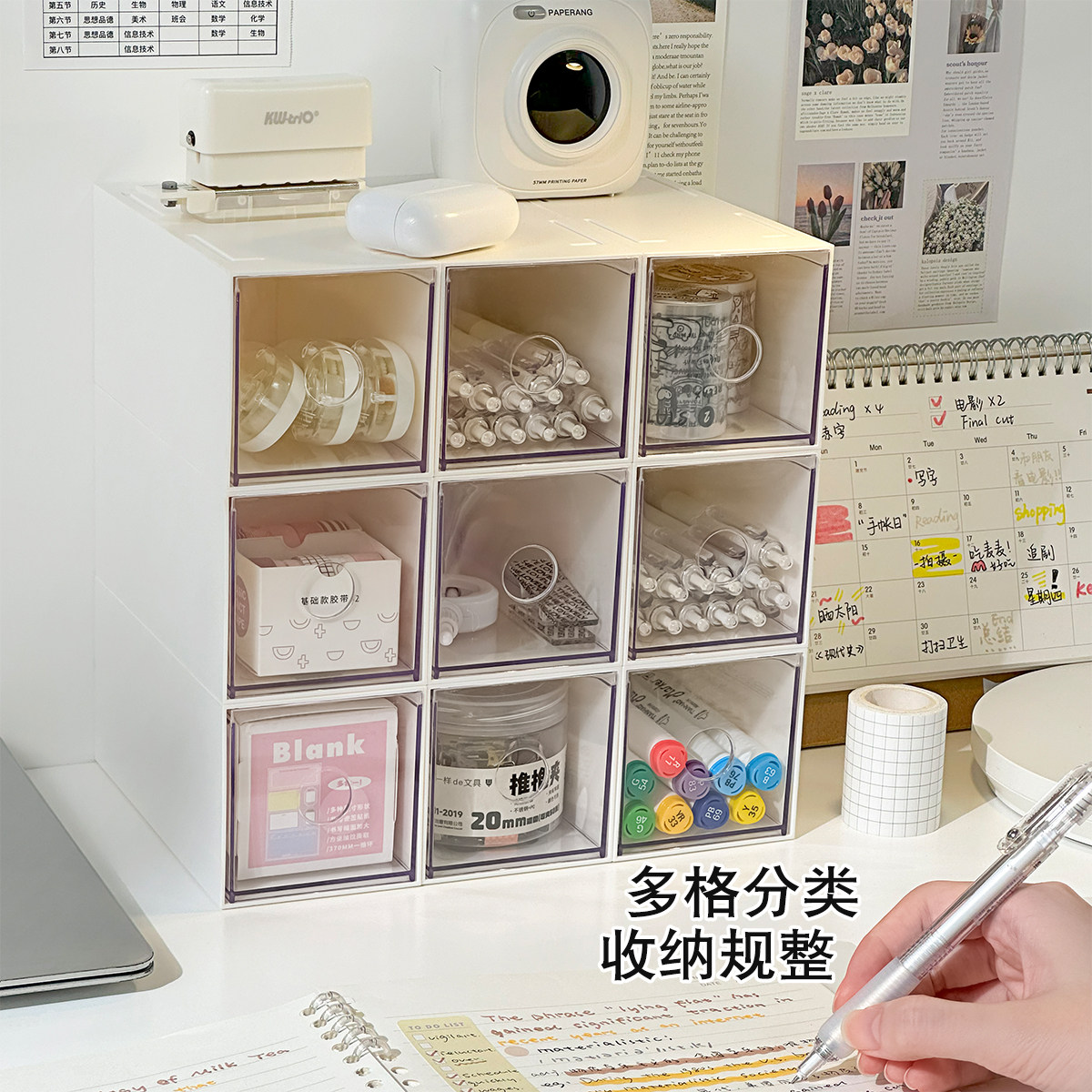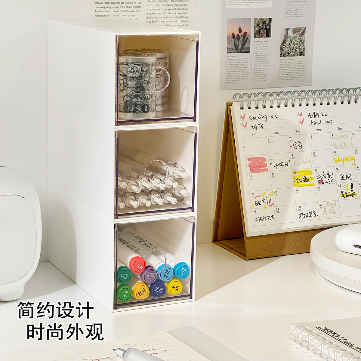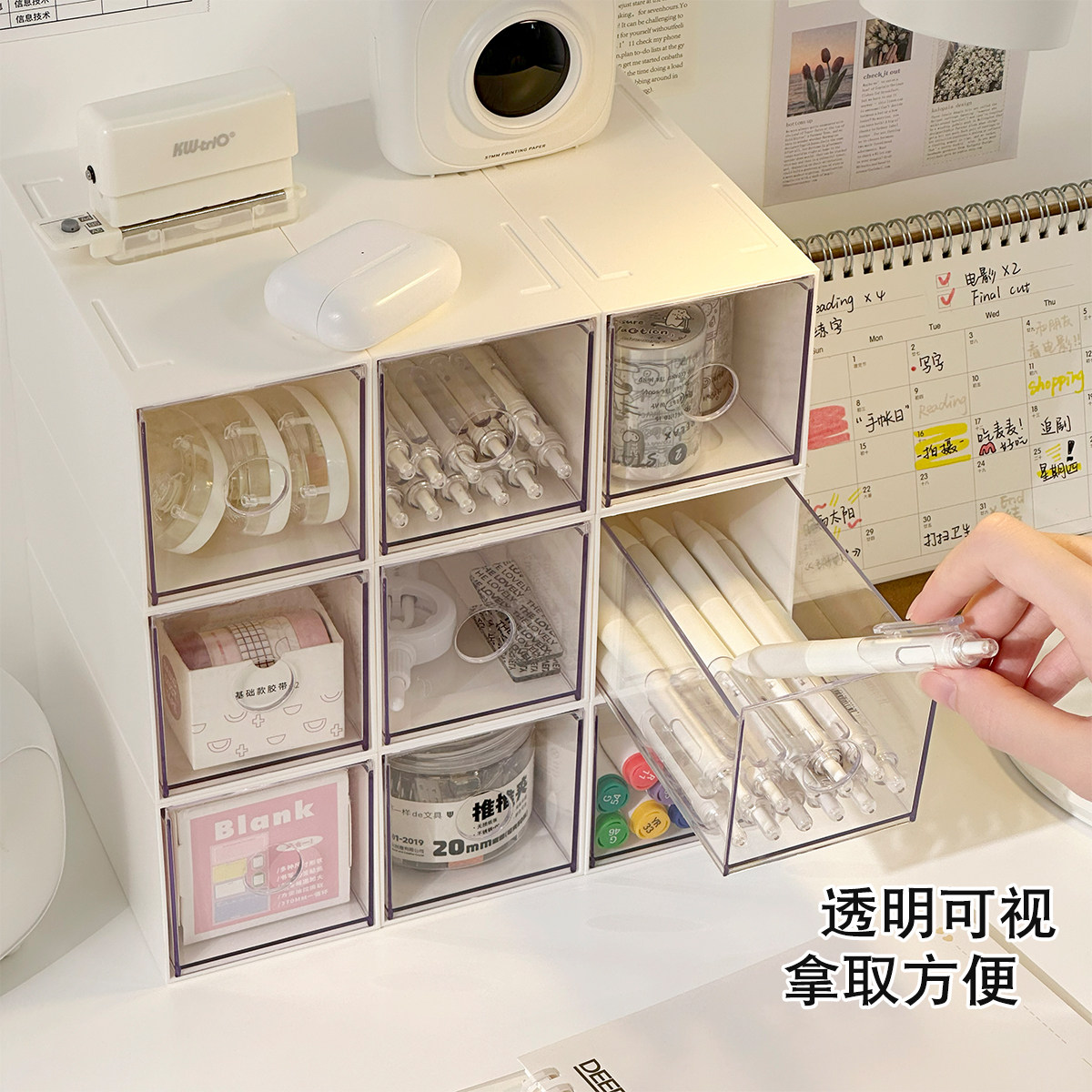 简约桌面收纳盒抽屉式透明置物架办公室工位神器学生用文具整理盒