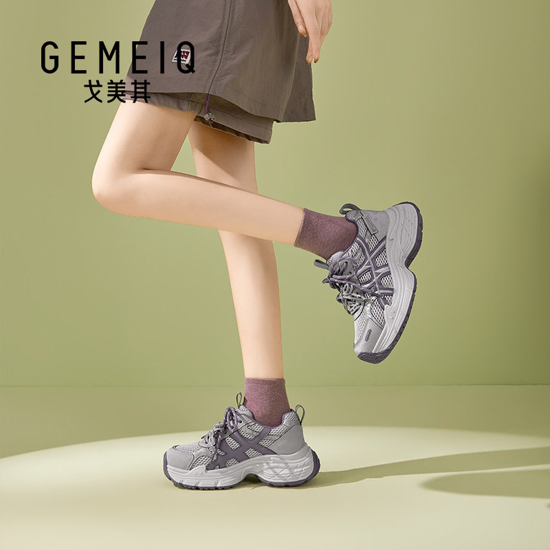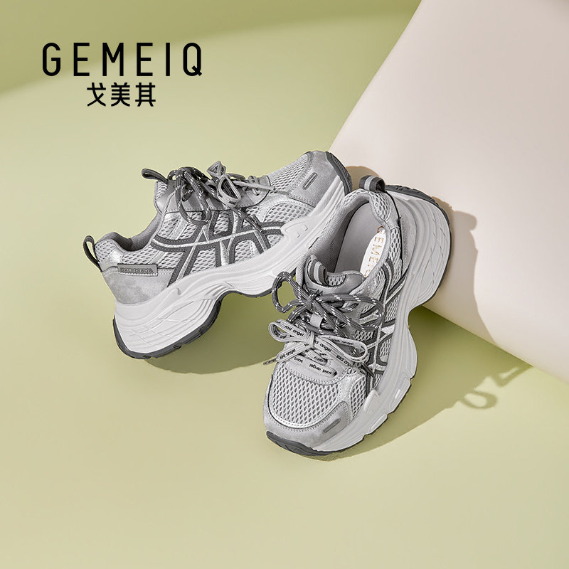 戈美其厚底老爹鞋女2026新款网面透气增高小个子百搭休闲运动鞋子