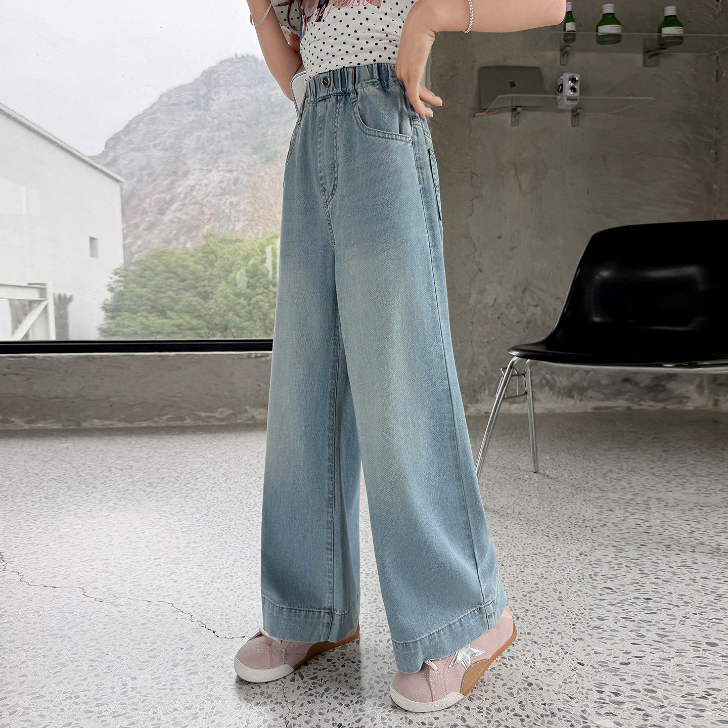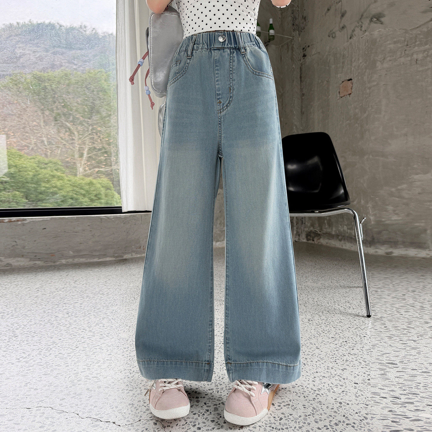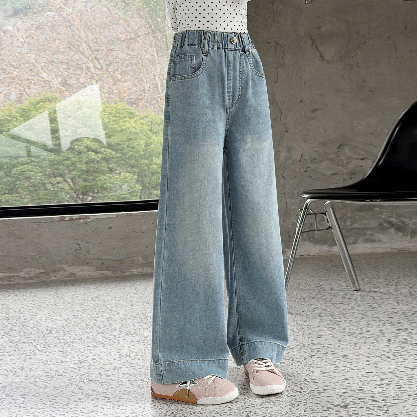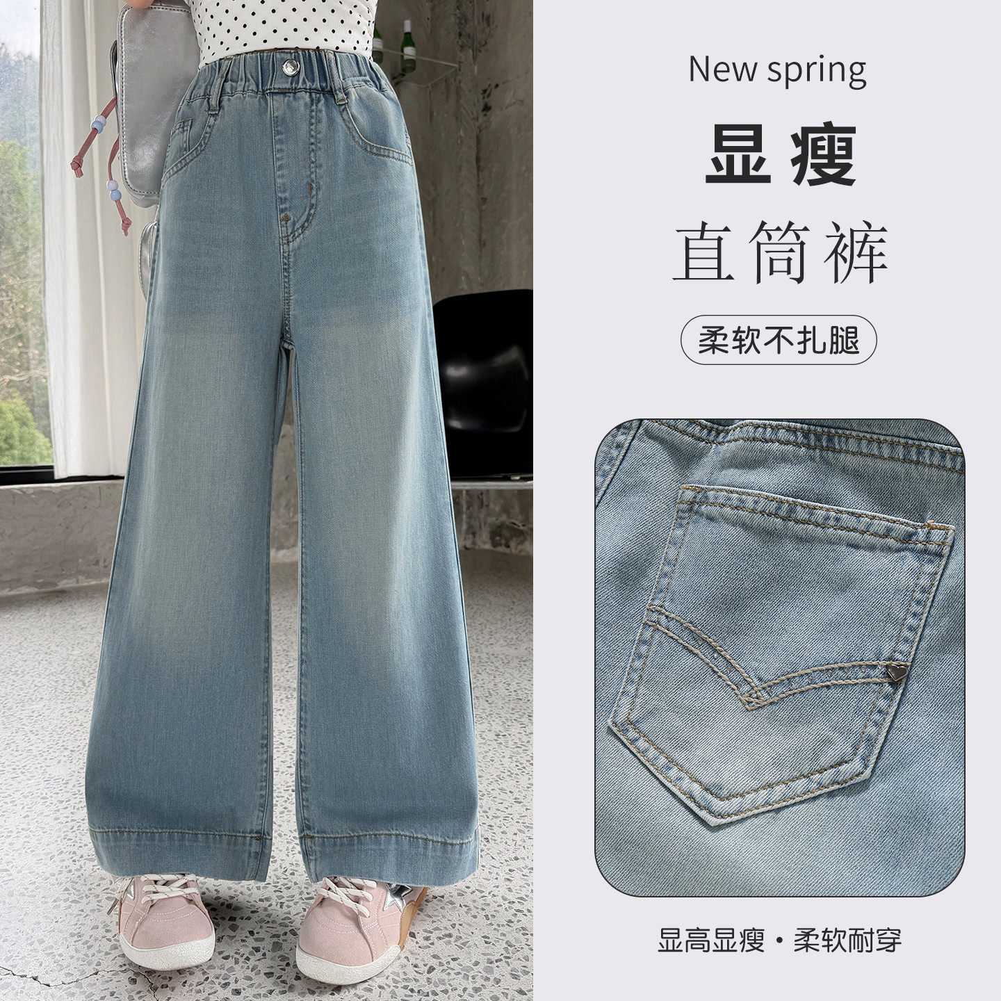 女童裤子春秋装儿童爆款长裤大童春款阔腿裤女孩初中生直筒牛仔裤