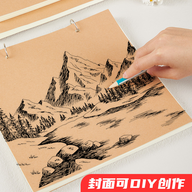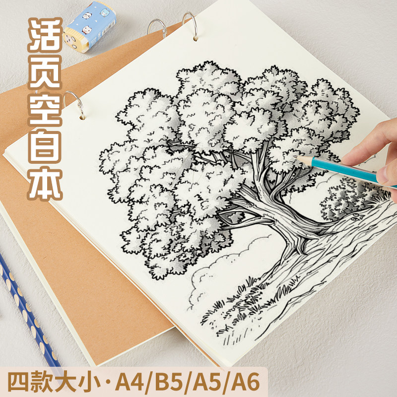 加厚素描本32K牛皮纸速写本A4水彩美术生手绘草稿本B5灵感画画本A5活页可拆卸绘画本A6儿童幼儿园空白图画本