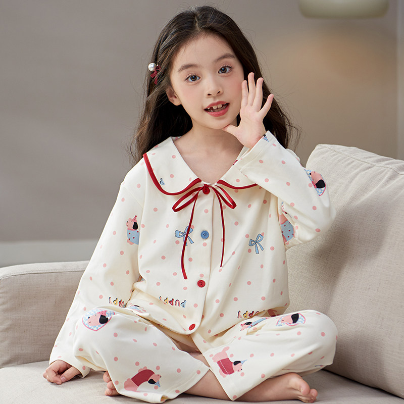 儿童睡衣女孩衣服腊肠狗中大童2026超火女童装纯棉家居服春秋套装