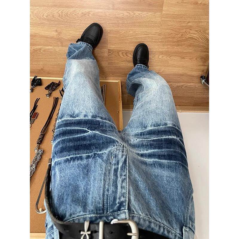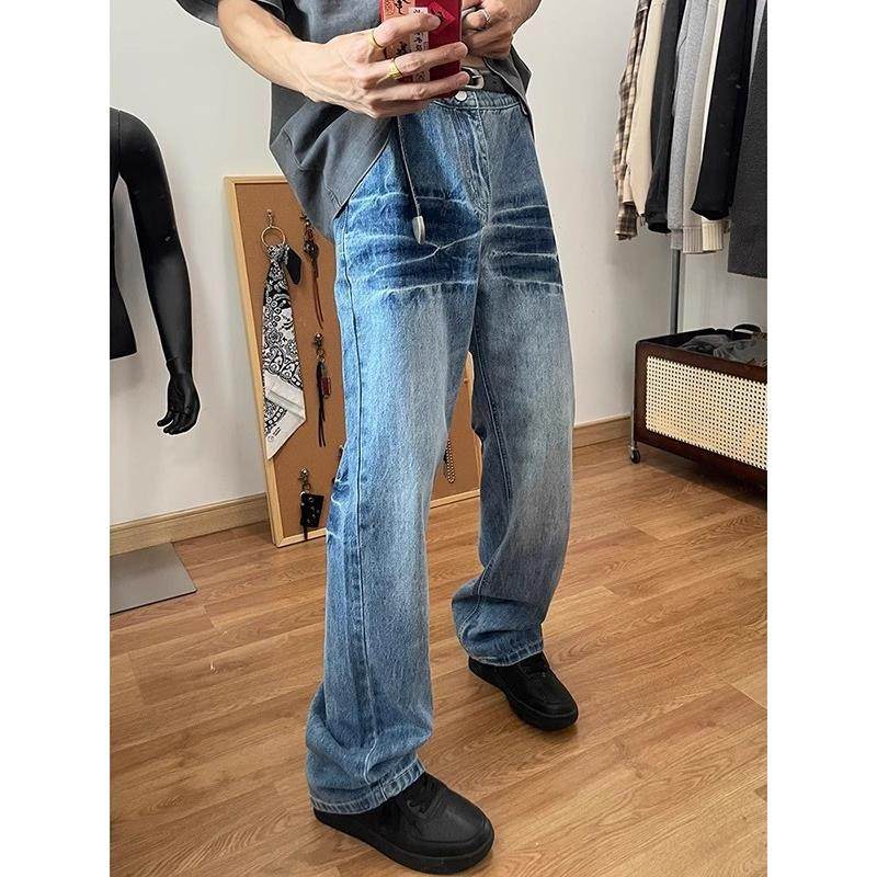 冰蓝色牛仔裤男款夏季薄款美式vibe裤子痞帅高级感水波纹微喇长裤