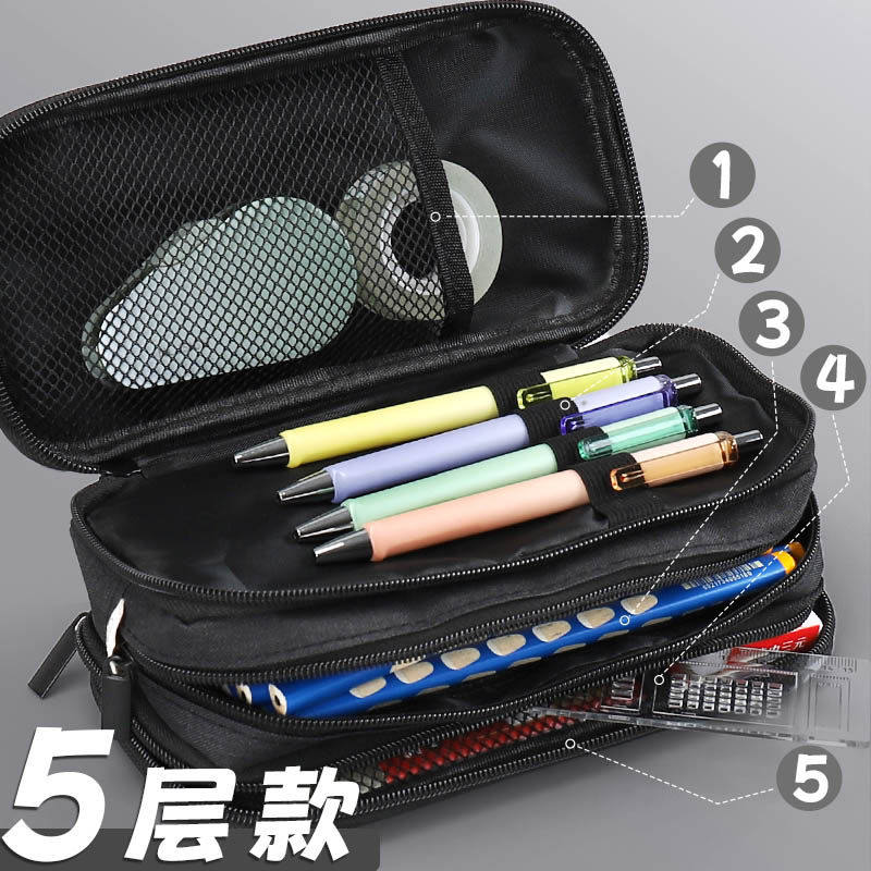 得力超大容量男生帆布铅笔袋多层小学生用文具盒男女韩版简约多功能高颜值笔盒拉链文具包高中初中生创意笔袋
