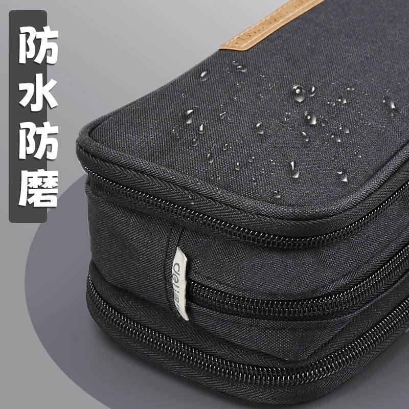 311线报网描述:得力超大容量男生帆布铅笔袋多层小