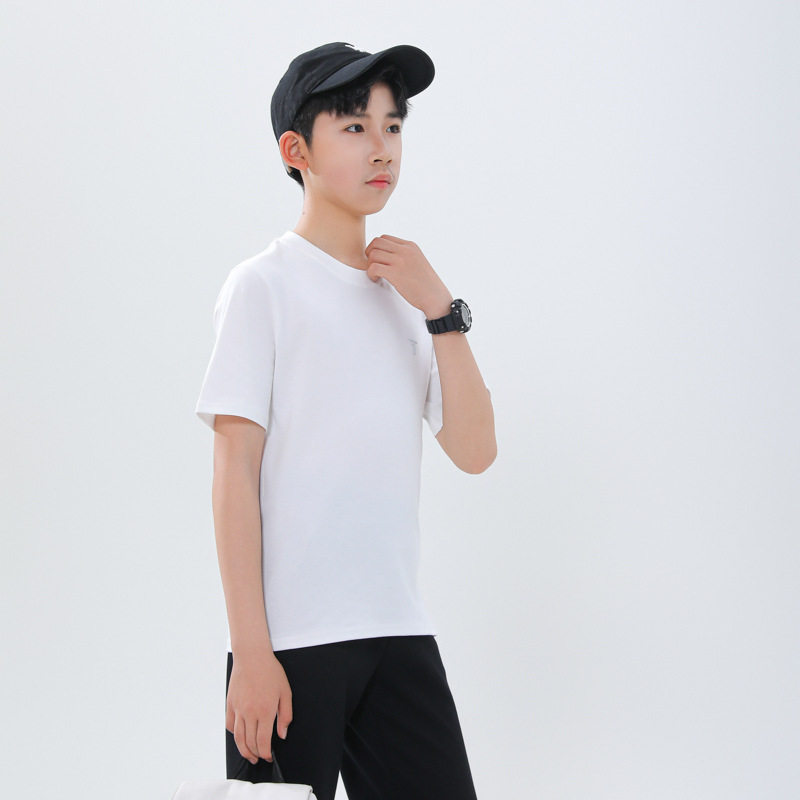 男大童纯棉打底衫初中学生夏装小男孩内搭上衣青少年白色短袖T恤