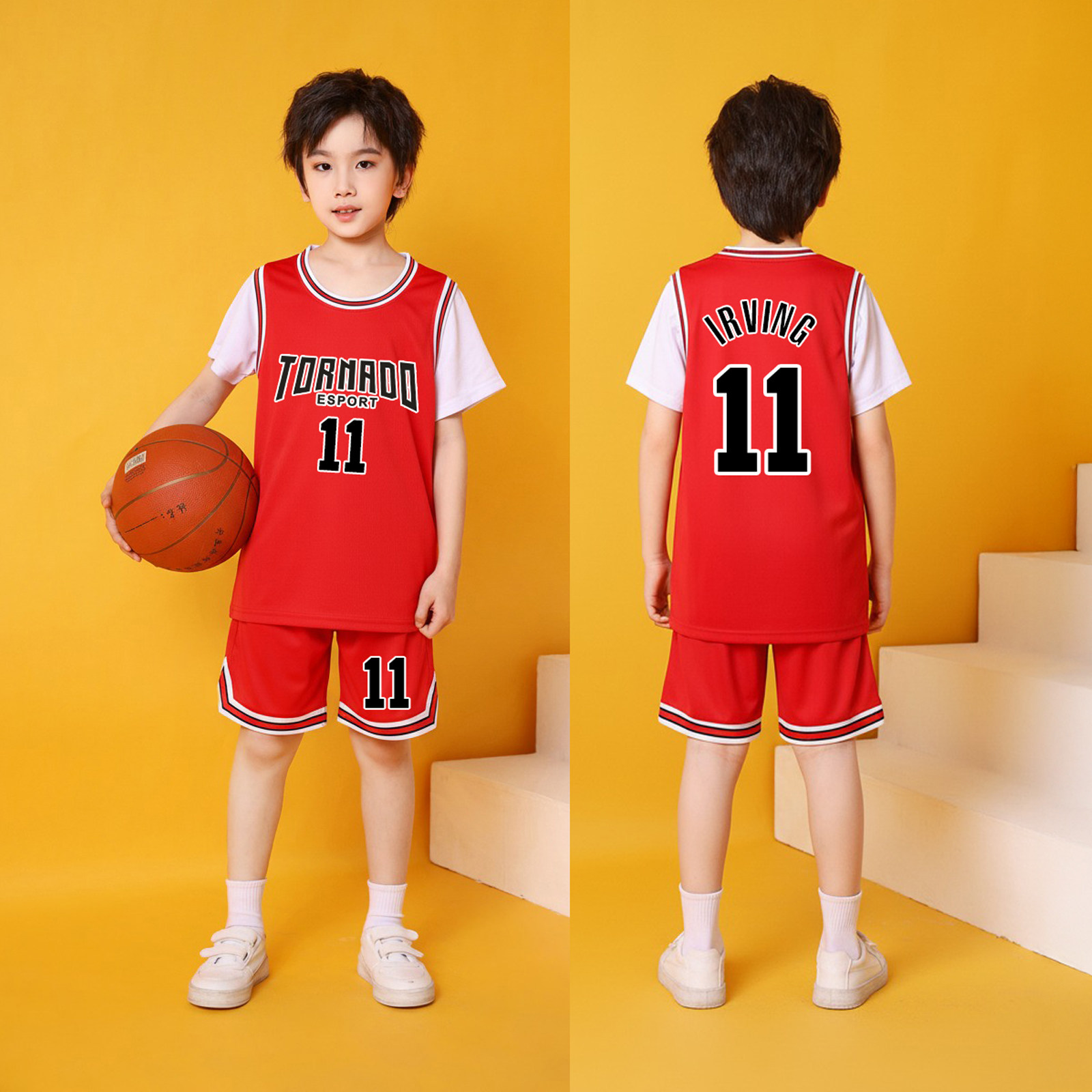 篮球服套装定制儿童男女印号学生短袖青年速干假两件训练服篮球衣