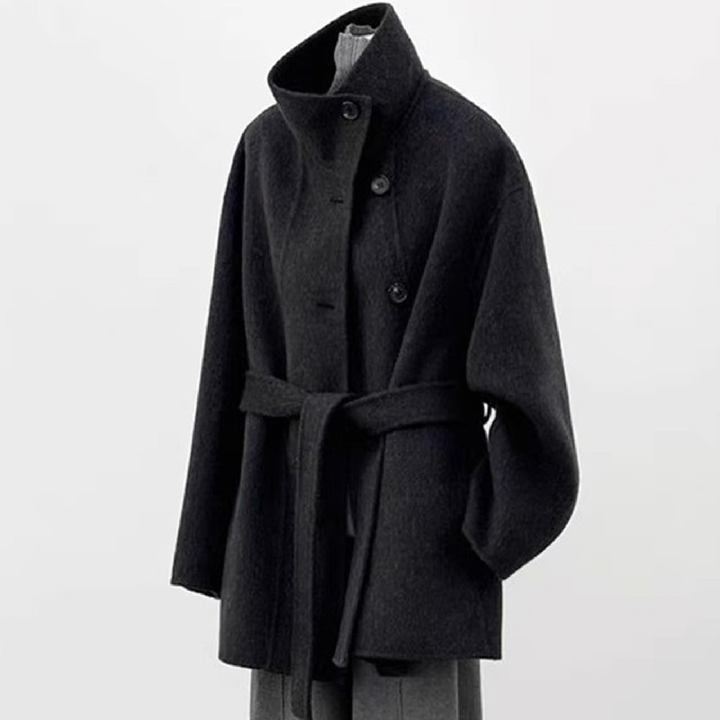 立领双面羊绒大衣女中长款2025秋冬新款小个子韩系短款羊毛呢外套