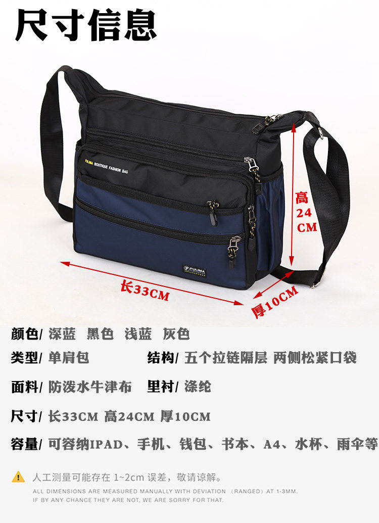 新款时尚男士背包单肩包通勤背包斜挎包轻便大容量旅行包防水男包