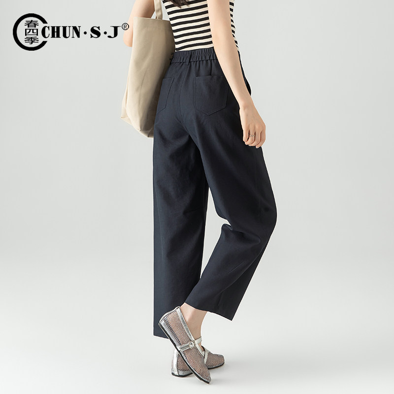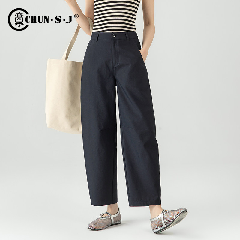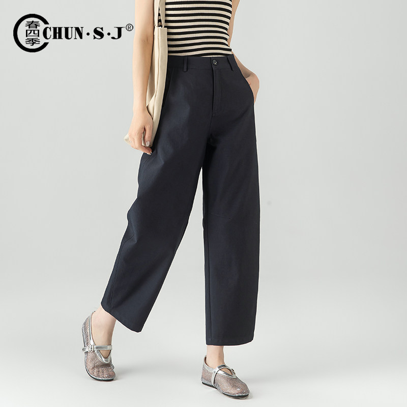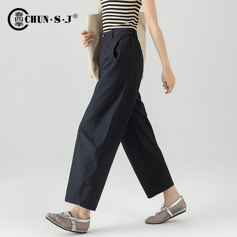 藏蓝色休闲弯刀裤女夏季薄款九分女裤2026新款裤子女款夏香蕉裤