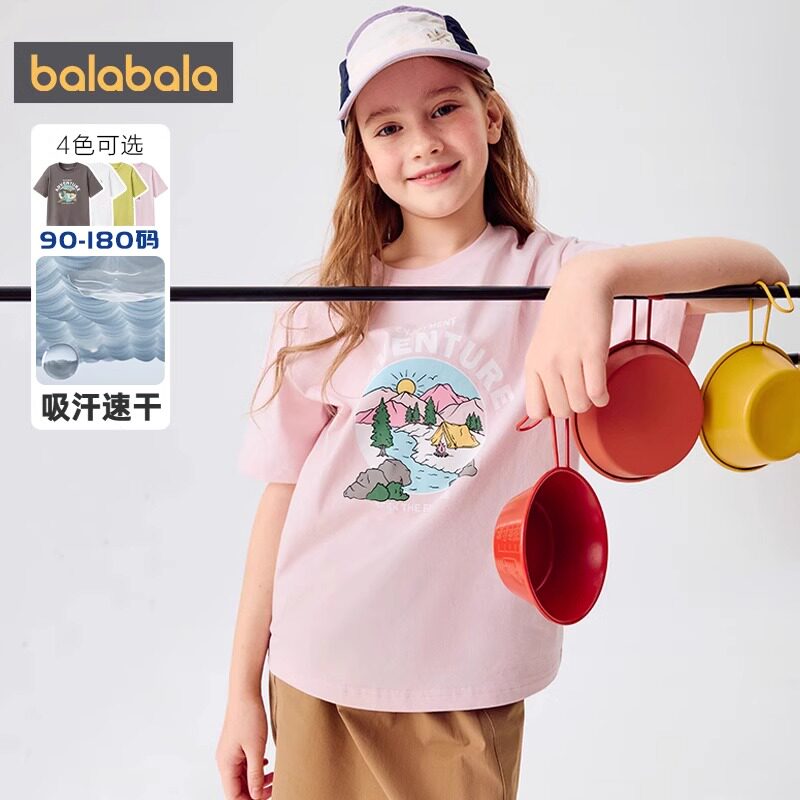 巴拉巴拉女童短袖t恤中大童纯棉打底衫儿童上衣夏装新款童装半袖t