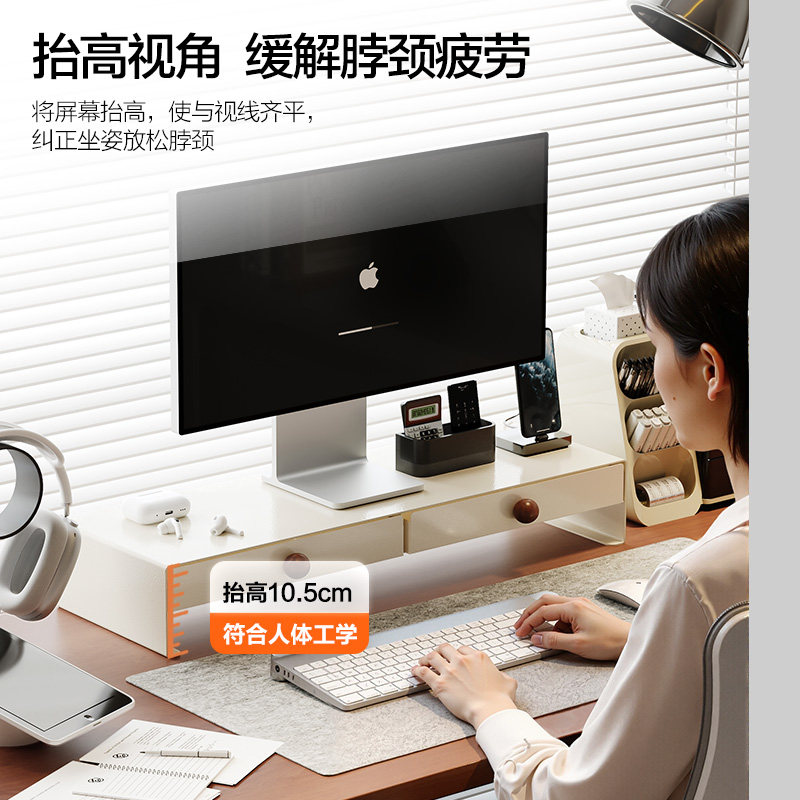 格美居台式电脑增高架带抽屉收纳显示器底座垫高支架办公桌面置物