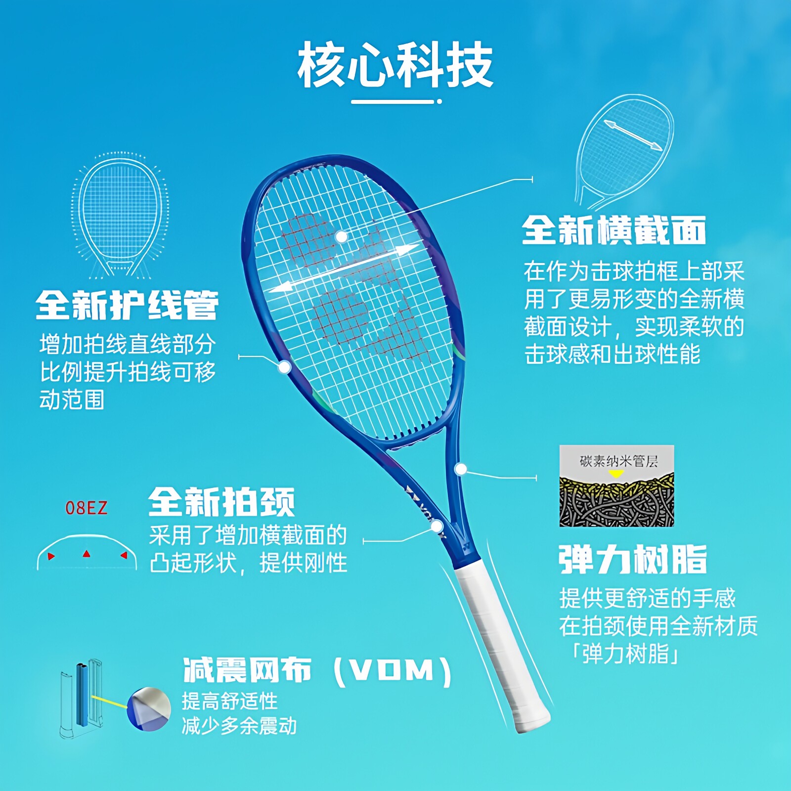 YONEX/尤尼克斯网球拍08EZONE第八代上海大师赛男女全碳素专业拍