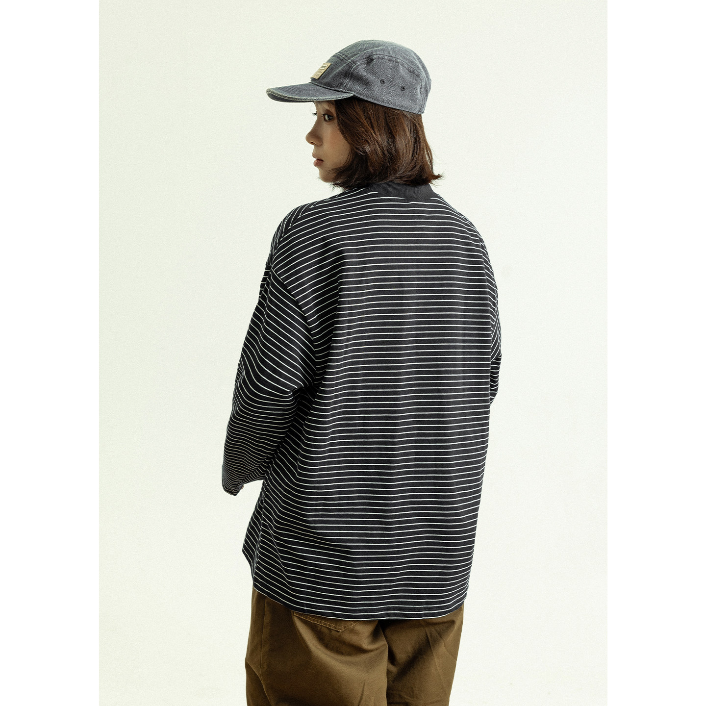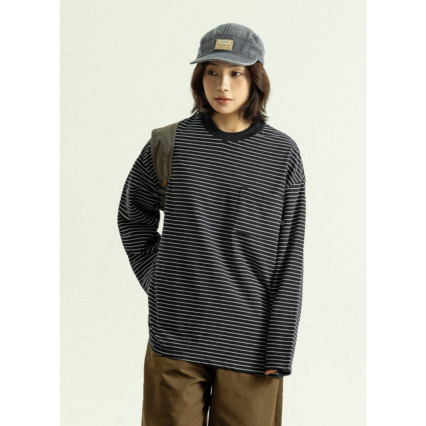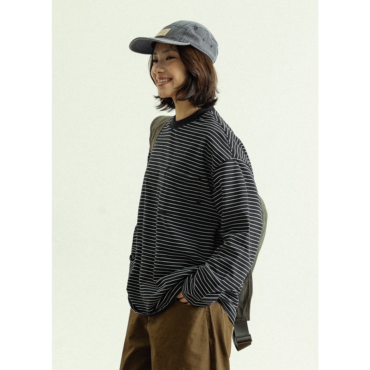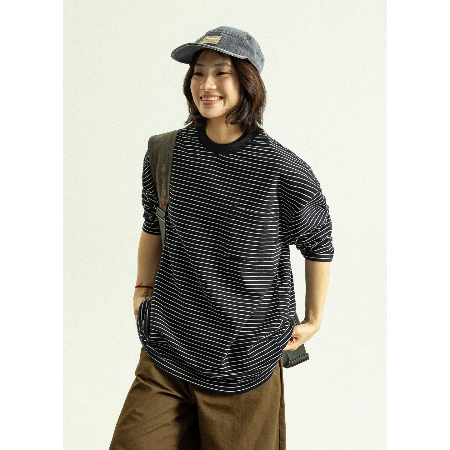 GoodNorth日系复古宽松条纹上衣男女款春季长袖t恤内搭打底衫卫衣