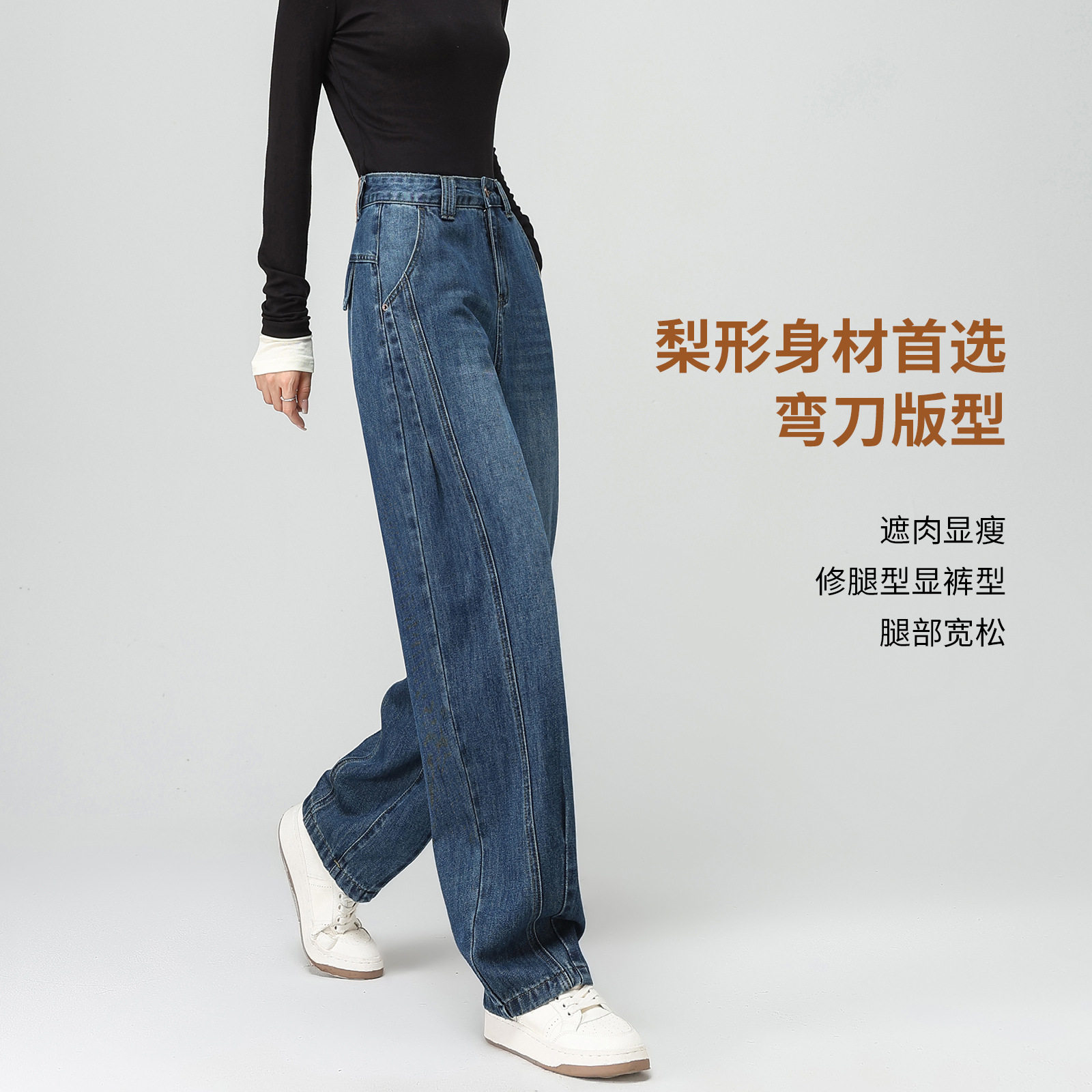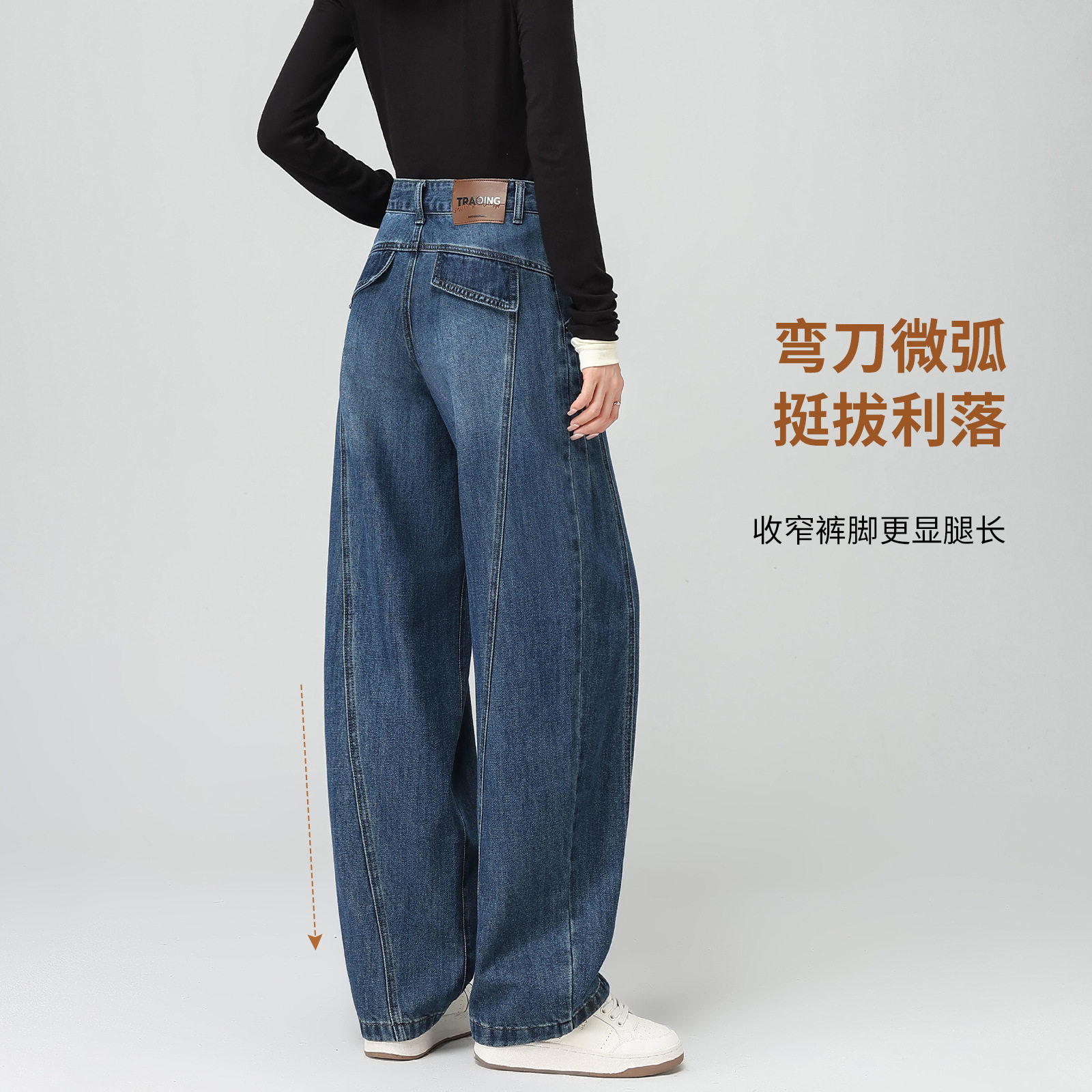 加绒加厚阔腿弯刀牛仔裤女款女士胖子大码小个子秋冬厚款裤子女
