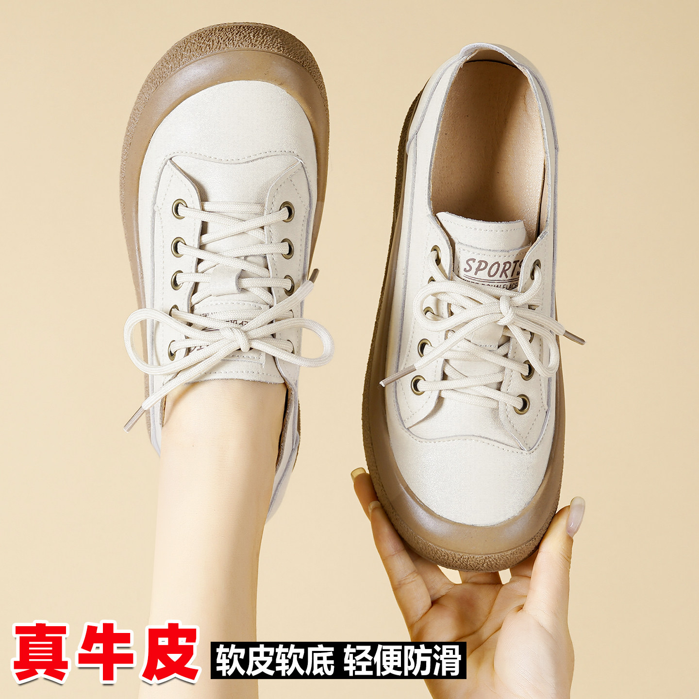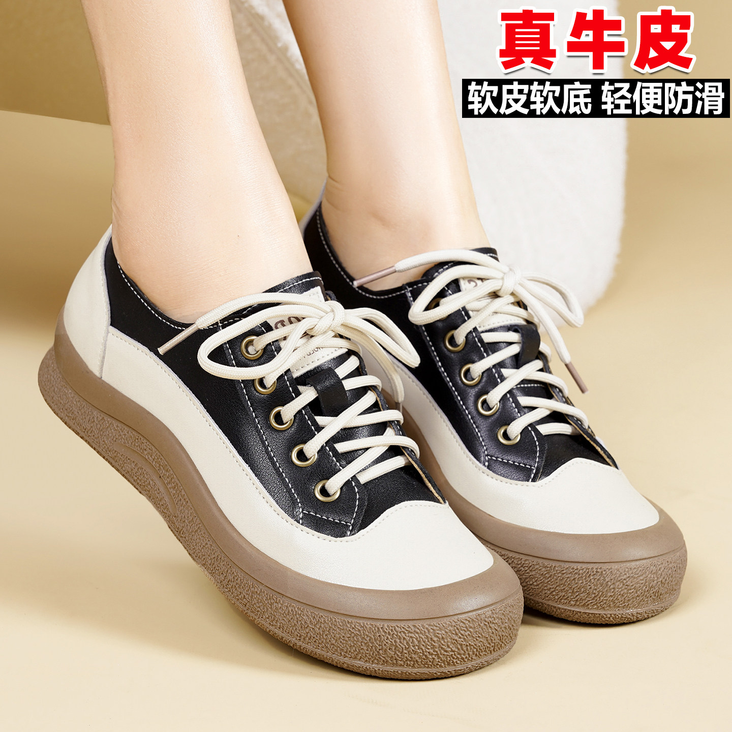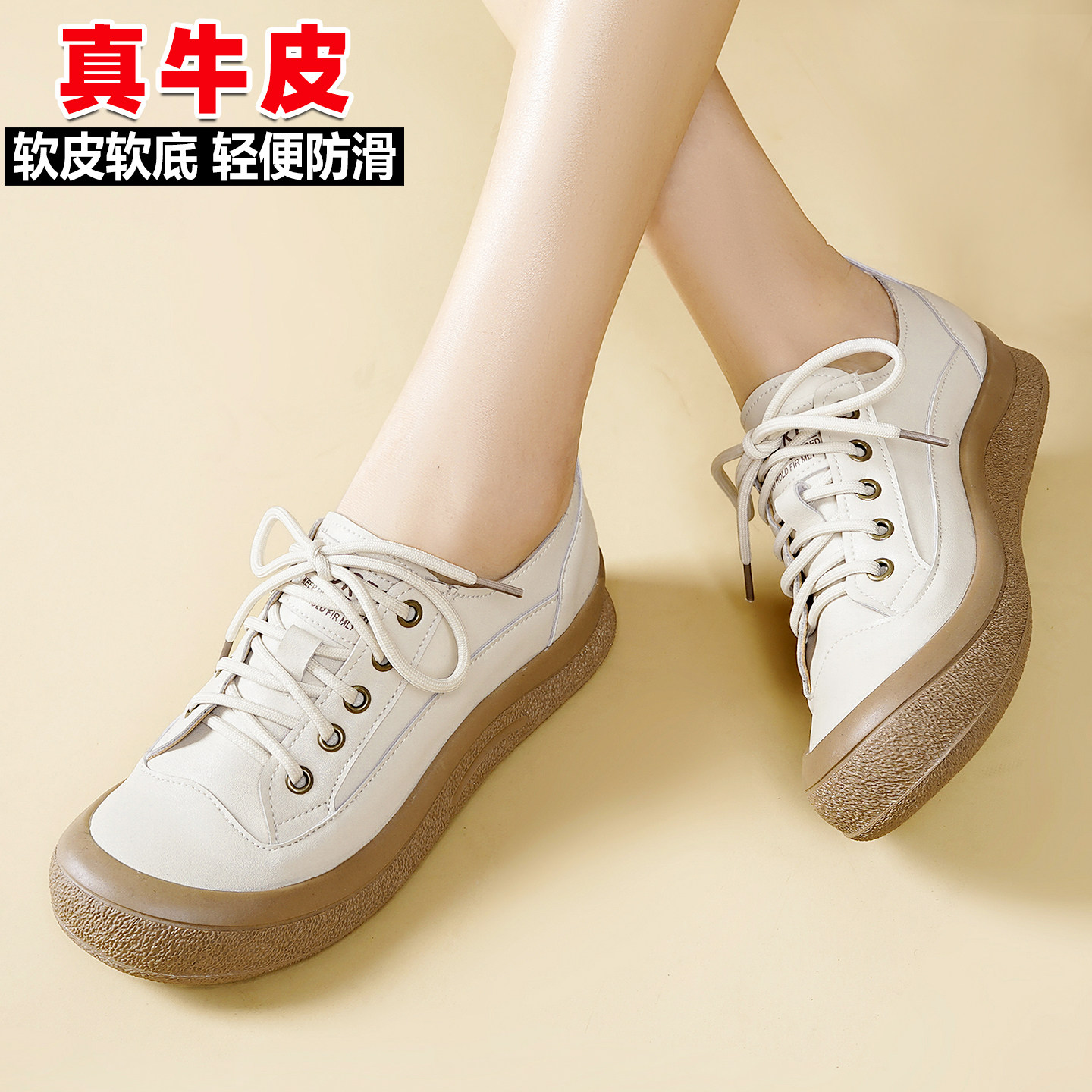 厚底小白鞋女士2026新款真皮轻便软底不累脚女鞋春秋单鞋软皮防滑