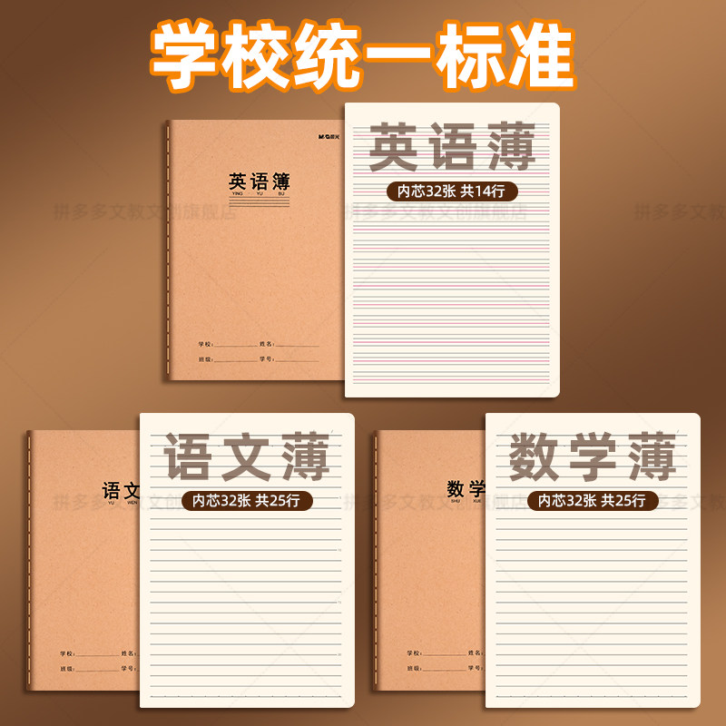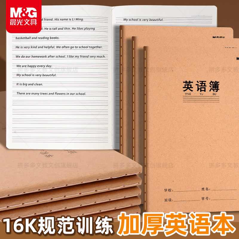 晨光16K英语作业本缝线本小学生初中牛皮本英语数学练习本学生