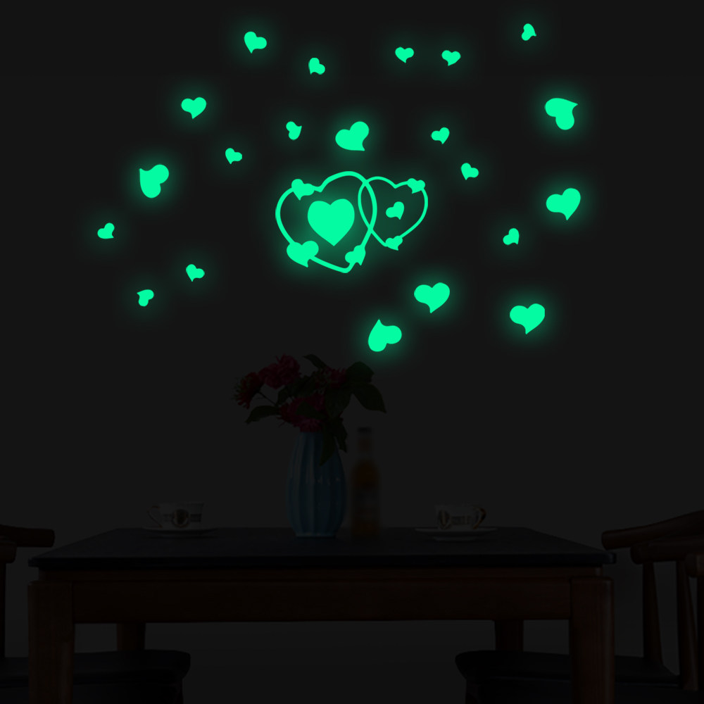 爱心夜光贴纸儿童房装饰自粘荧光贴画创意布置墙贴发光贴卧室房间