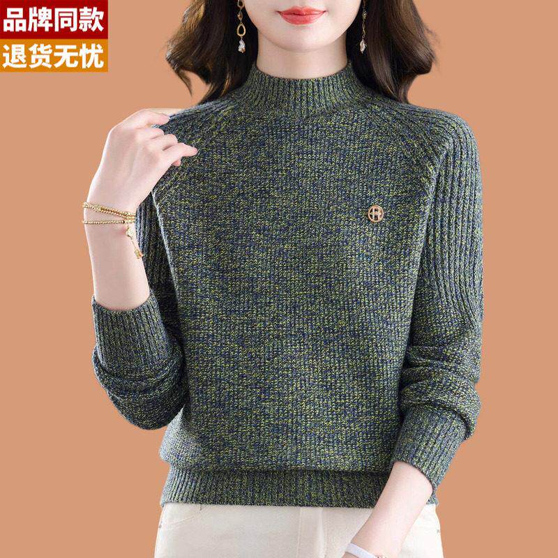 半高领毛衣女款2025秋冬新款洋气花纱可外穿内搭厚羊毛针织打底衫