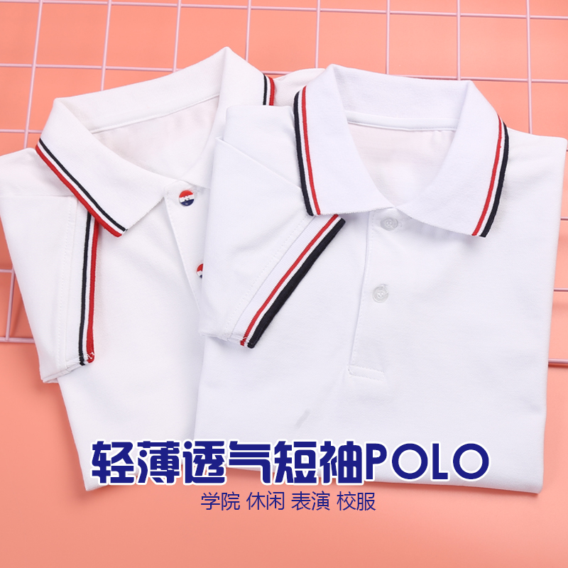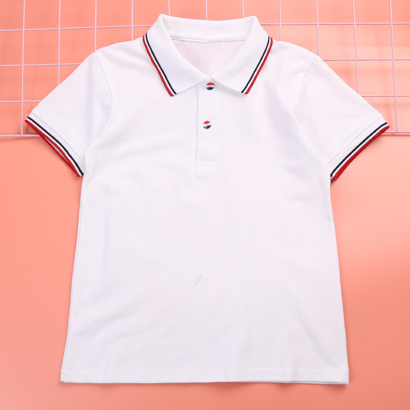 儿童polo衫夏季男童女童短袖T恤小学生校服中学白色上衣毕业班服