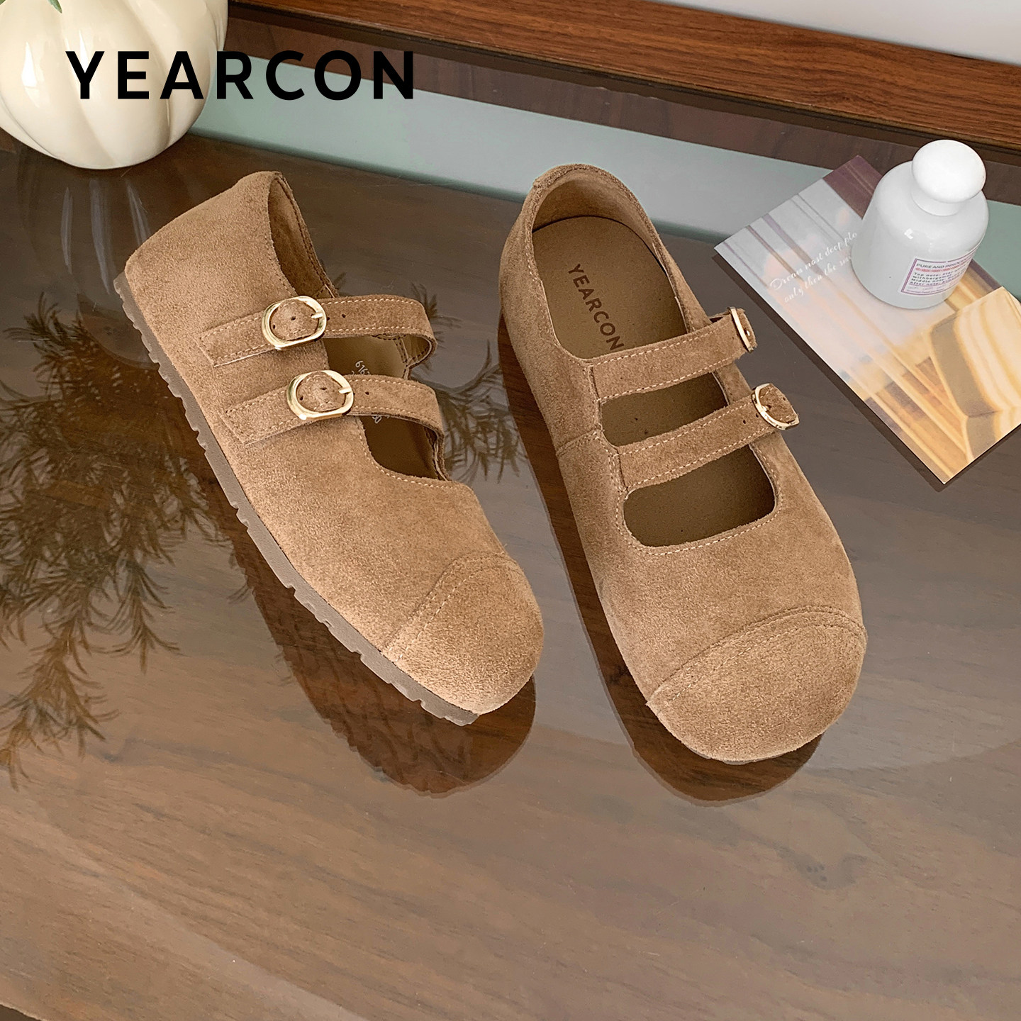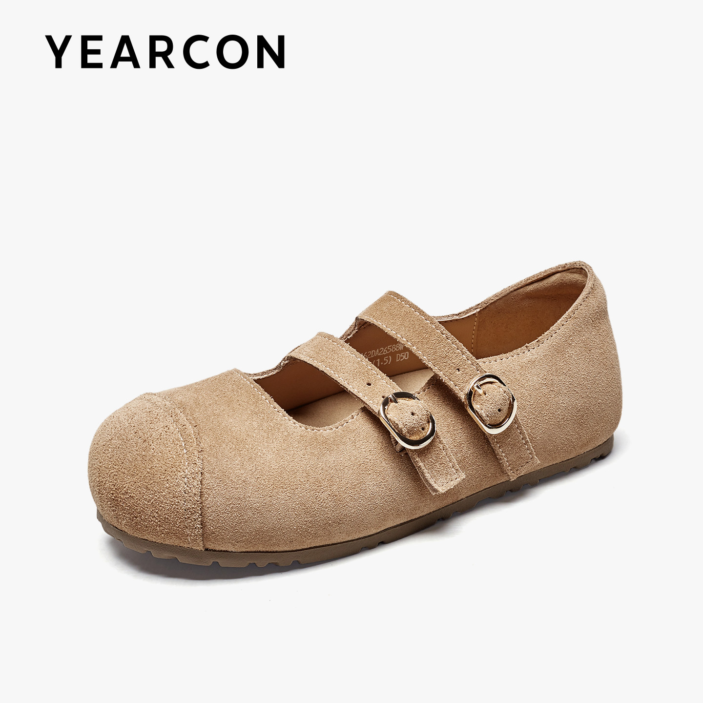 意尔康真皮丑萌勃肯鞋女2026春新款内增高复古一字带休闲玛丽珍鞋