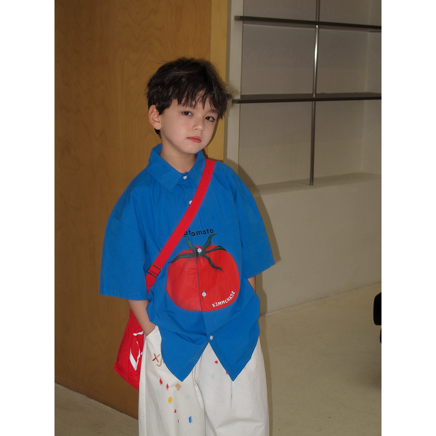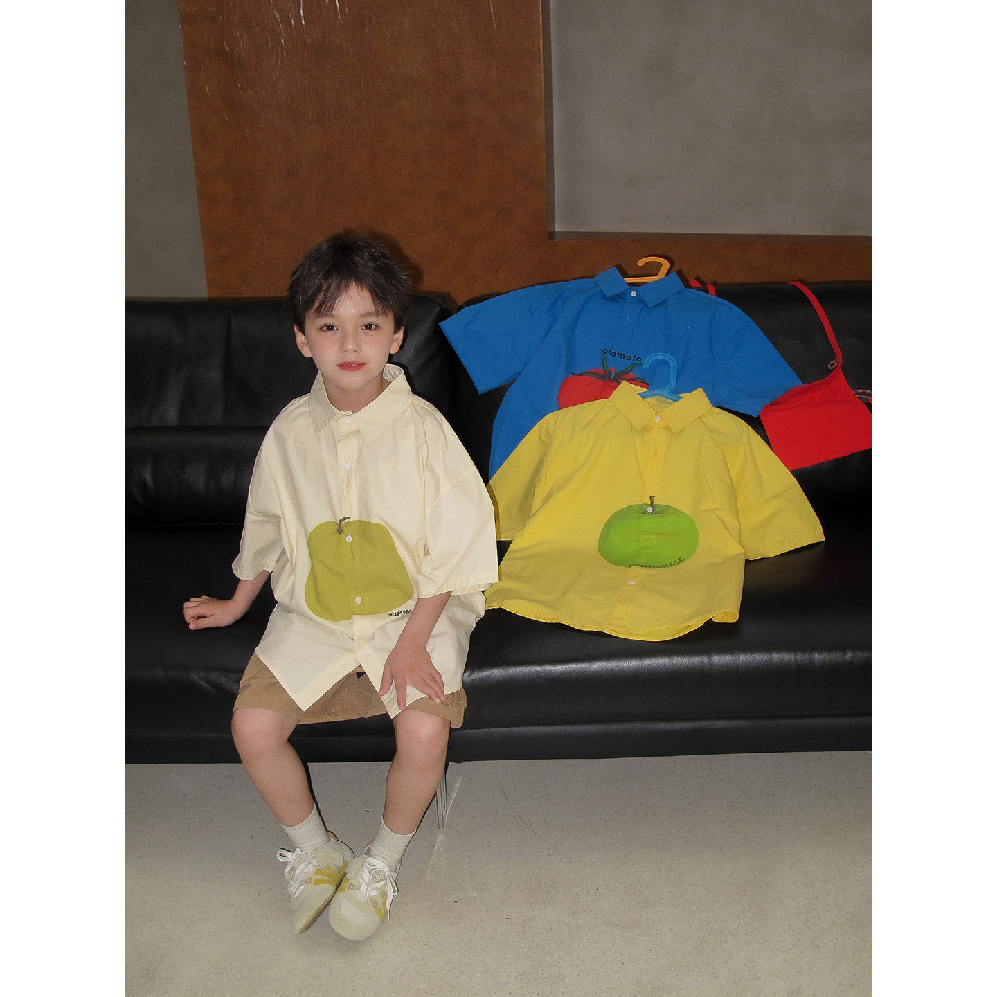 虾酱麻麻男童短袖衬衫春装2026新款男孩纯棉上衣卡通印花儿童衬衣