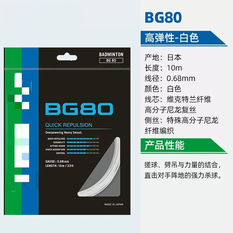 尤尼克斯 BG80 CH 球拍线 80羽毛球线 高弹性高弹型 yy BG80P
