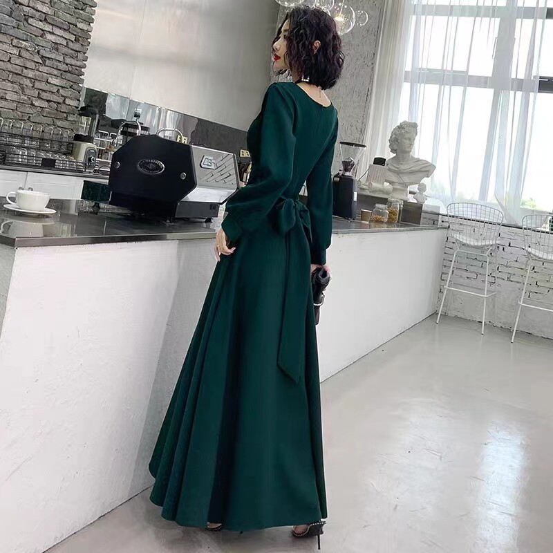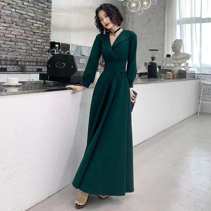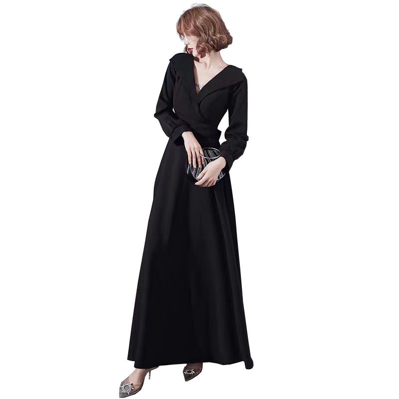黑色晚礼服女2023冬季年会宴会高级感气质长袖连衣裙平时可穿显瘦