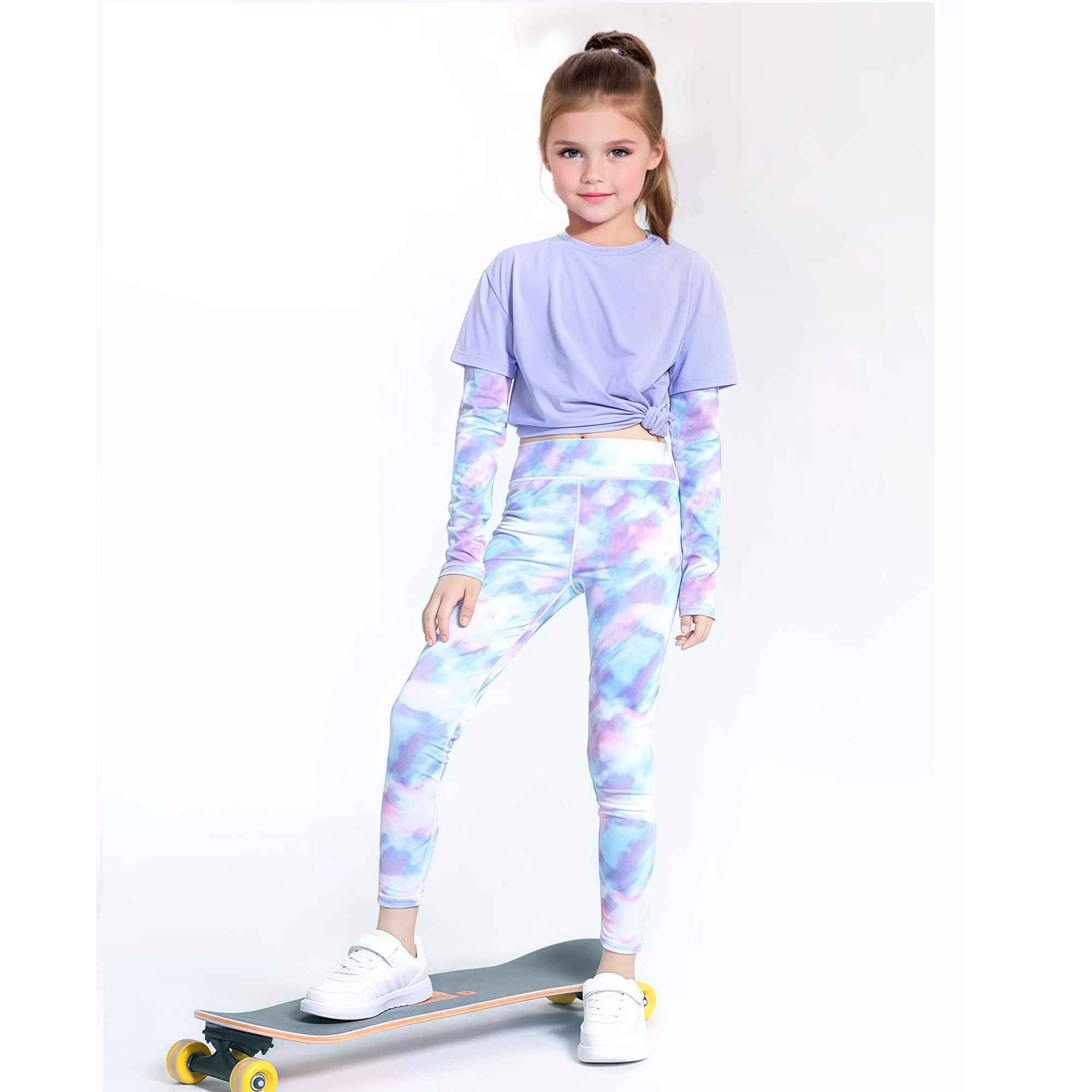 儿童运动套装女童夏季速干衣女孩长袖长裤两件套瑜伽服学生跑步服