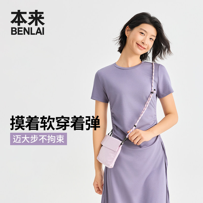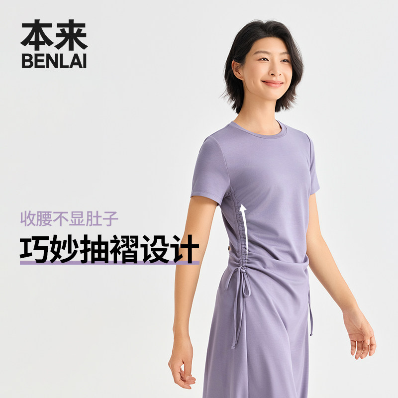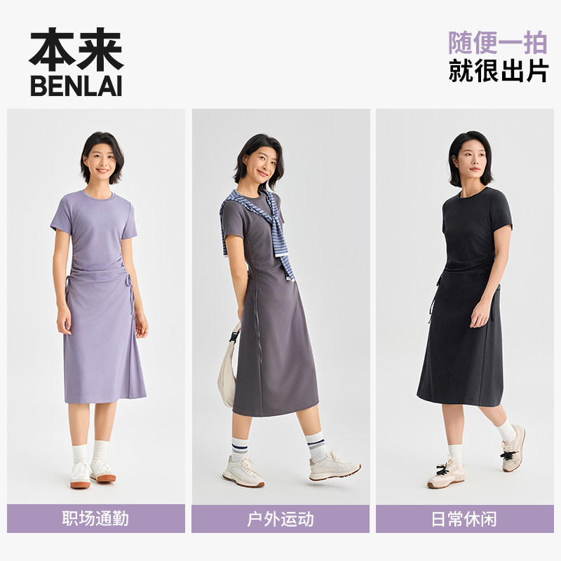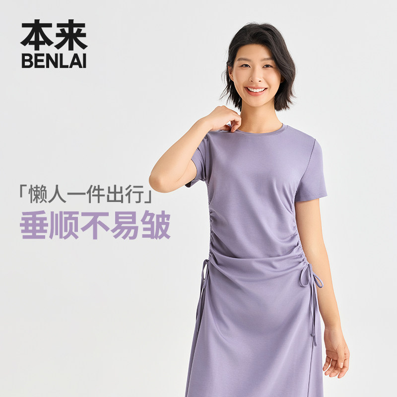 本来BENLAI女士云感柔抽绳收腰短袖连衣裙2026春季新款BNM760001