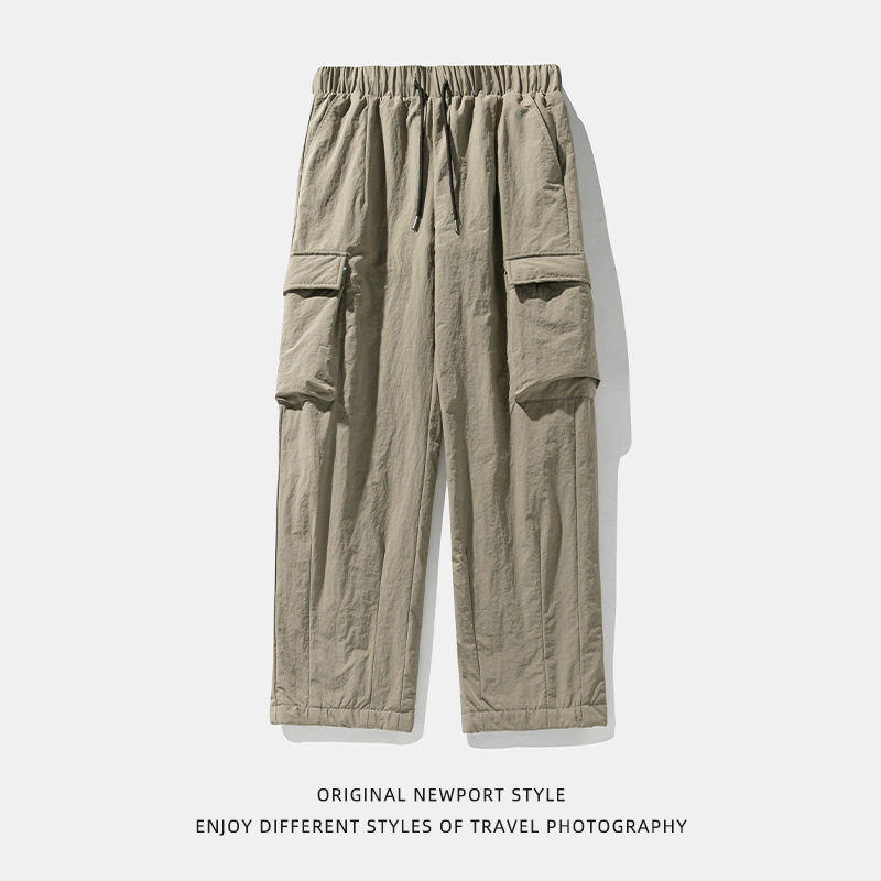 青少年户外加绒裤子男冬加厚羽绒裤登山保暖防风机能裤日系工装裤