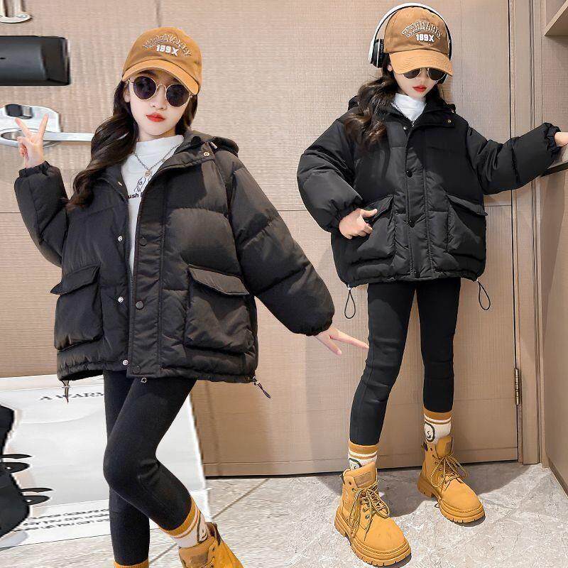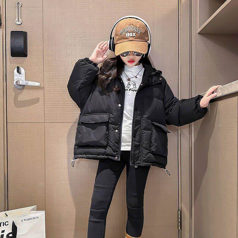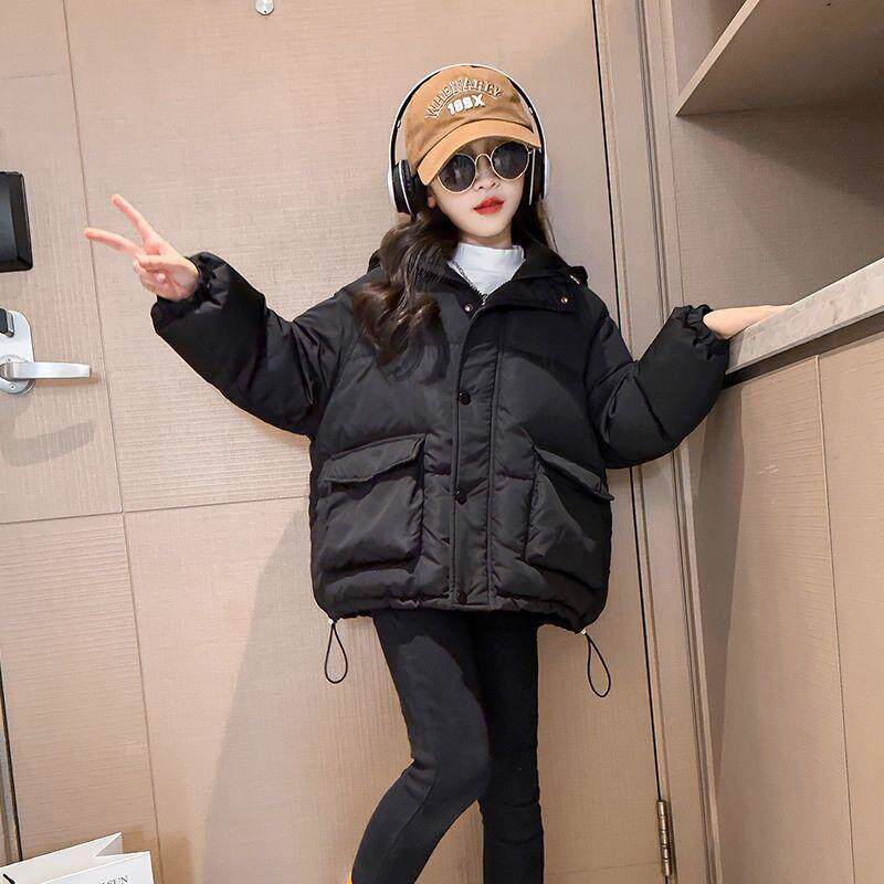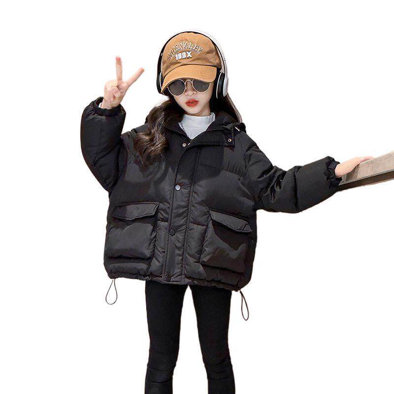 女童棉服新冬装中大童加厚棉衣外套儿童羽绒棉短款洋气棉袄潮黑色